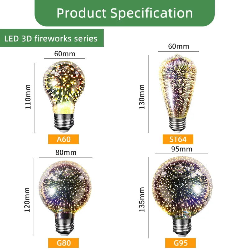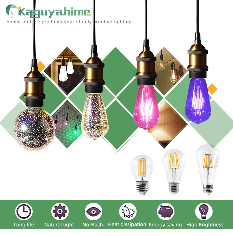 Ретро Светодиодная лампа Эдисона Kaguyahime E27 220 в 3D фейерверк лампа E27 светодиодсветильник лампа накаливания лампа ST64G95A60 лампа Эдисона
