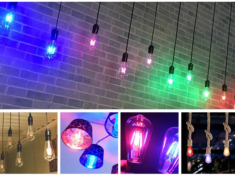 Светодиодсветодиодный лампы Эдисона, красный, розовый, зеленый цвет
