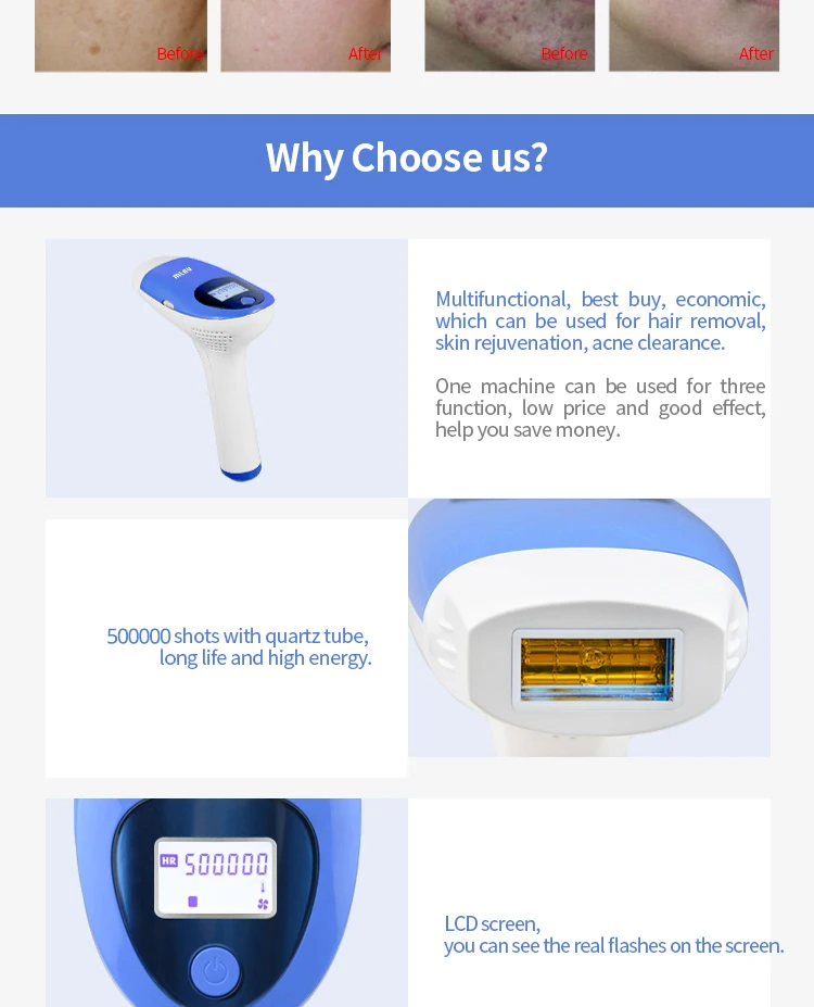 1. Премиум уход в комфорте вашего дома-Наслаждайтесь высококачественными услугами по удалению волос в любом месте. Наше устройство для удаления волос имеет компактный дизайн, который позволяет легко носить его с собой, когда вы идете. Вы никогда больше не потратите сотни долларов на салон красоты.2. Наиболее эффективная система удаления волос на теле-средство для удаления волос на теле MLAY использует интенсивный импульсный светильник (IPL) для обеспечения наиболее эффективного постоянного удаления волос. Он имеет 5 уровней энергии и будет давать отличные результаты только в 4-6 обработках. Вы также получите 60 дней гарантия возврата денег с каждой покупки, напишите нам по электронной почте.3.100% безопасно для вашей кожи-новейшая технология удаления волос IPL гарантирует вам полную безопасность по сравнению с другими методами постоянного удаления волос. Поэтому вы гарантируете полную безопасность, когда вы делаете это устройство для удаления волос на выбор. Надевайте очки при использовании устройства.4. Идеально подходит для мужчин и женщин-наше IPL постоянное устройство для удаления волос является идеальным выбором как для мужчин, так и для женщин. Идеально подходит для удаления волос с рук, подмышек, ног, спины, груди, линии бикини и лица. Примечание: Не для использования на красном, белом, Или серые и коричневые или черные тона кожи. 5.надежный выбор для удаления тонких и густых волос-мы исследовали более 2000 человек по всему миру. Для удаления тонких волос: около 86.5% человек тонкие волосы Прошло всего 5 сеансов. Для удаления густых волос: около 83.2% человек требуют 8 занятий. После 3-6 месяцев использования, волосы заметно меньше и рост волос предотвращается, нам просто нужно поддерживать только каждые два или более Месяцев.