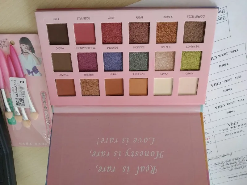 Брала палетку в 18 цветов - никаких нареканий. Посылка отслеживалась, шла приемлемое количество времени. Цвета супер, ложатся хорошо, на липкую основу глитера или тональника - прям огонь. По качеству пигмента проблем нет, реакции на коже или вокруг глаз тоже не было - на себе опробовала. Глаза не щиплет. Очень довольна приобретением!