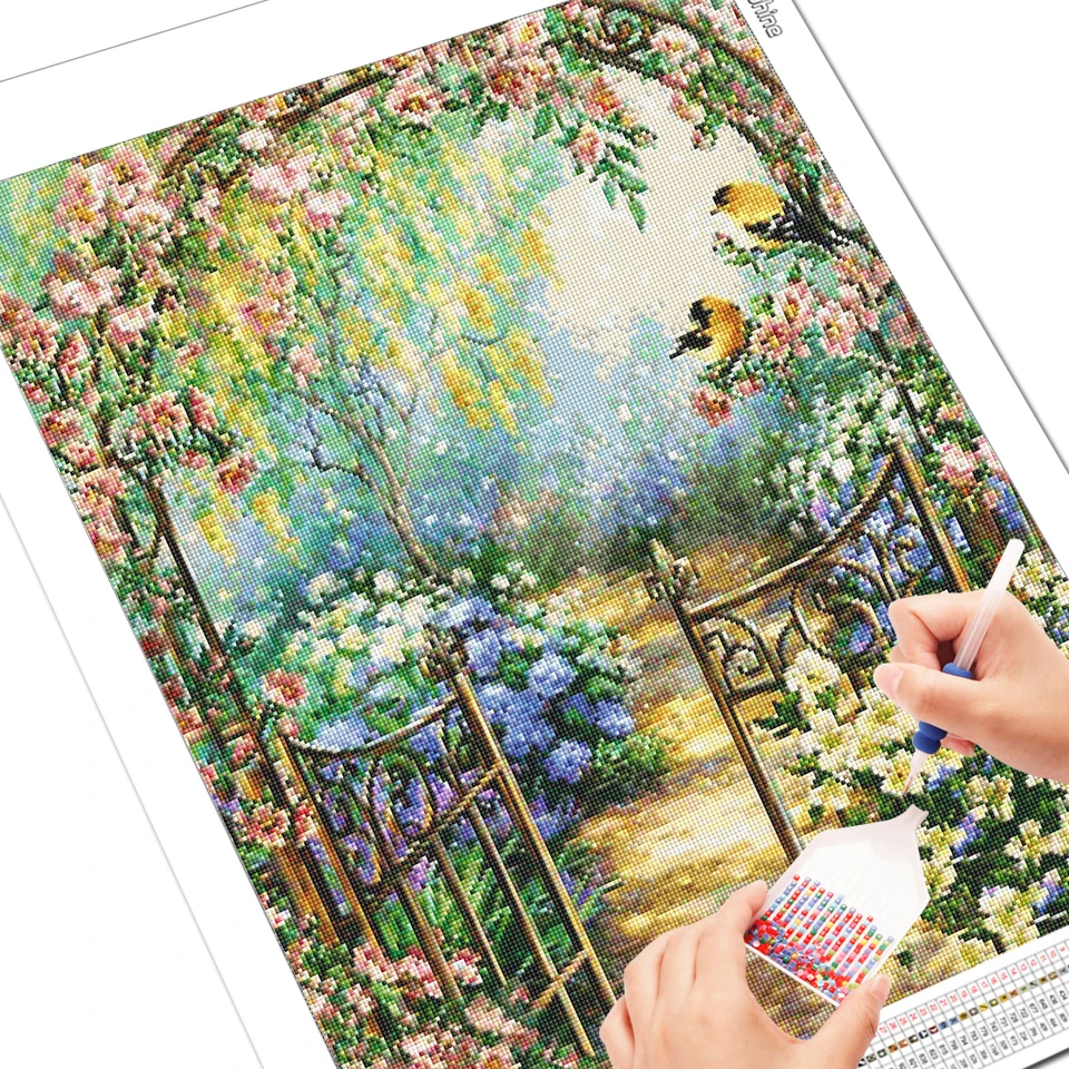 Картина с квадратными стразами, пейзаж с изображением сада, мозаичная картина из стразов г.