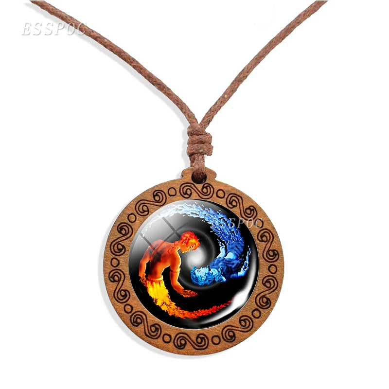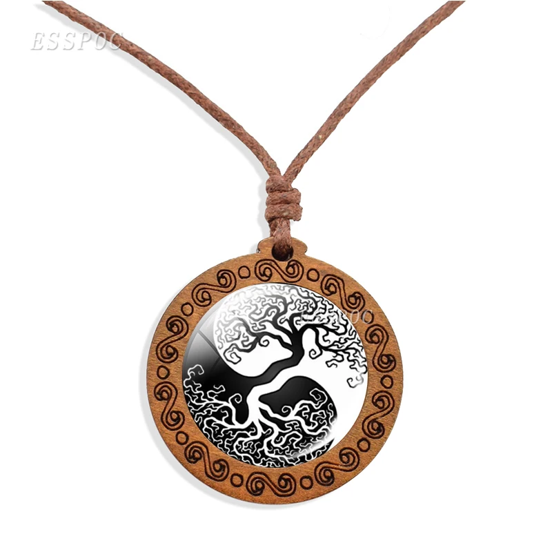 Деревянное ожерелье Yin Yang Taichi, ожерелье с кабошоном из стекла, модные аксессуары, деревянная подвеска, подарок для мужчин и женщин