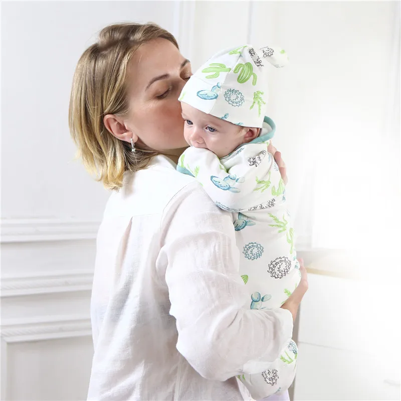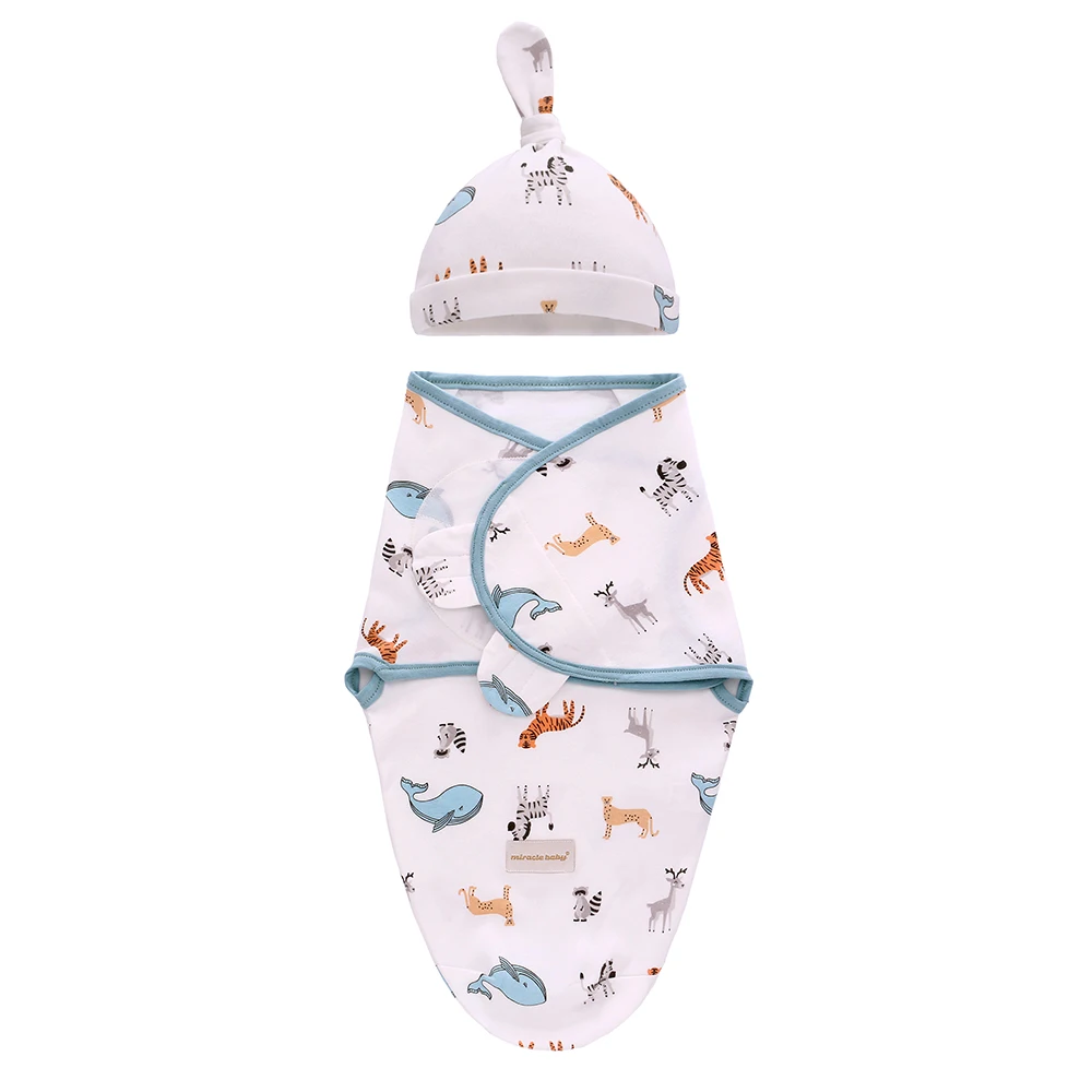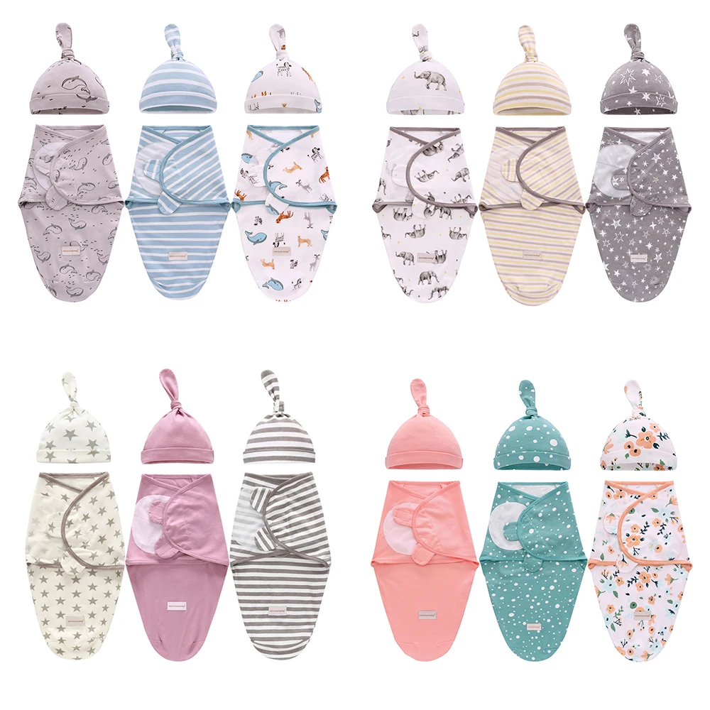 Пеленальное Одеяло + шапочка, пеленка-кокон для новорожденных, хлопковые пеленки сумка, детский конверт, спальный мешок, постельное белье