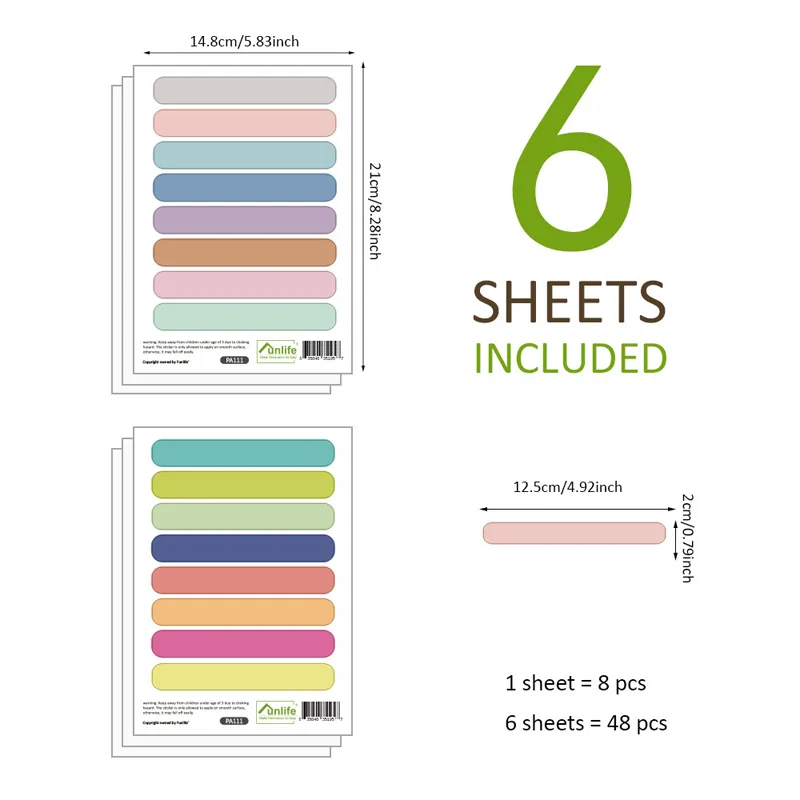 Каждая Наклейка на стену: 12,5x2 см x 48 шт. (4,92x0,79x48 шт.)