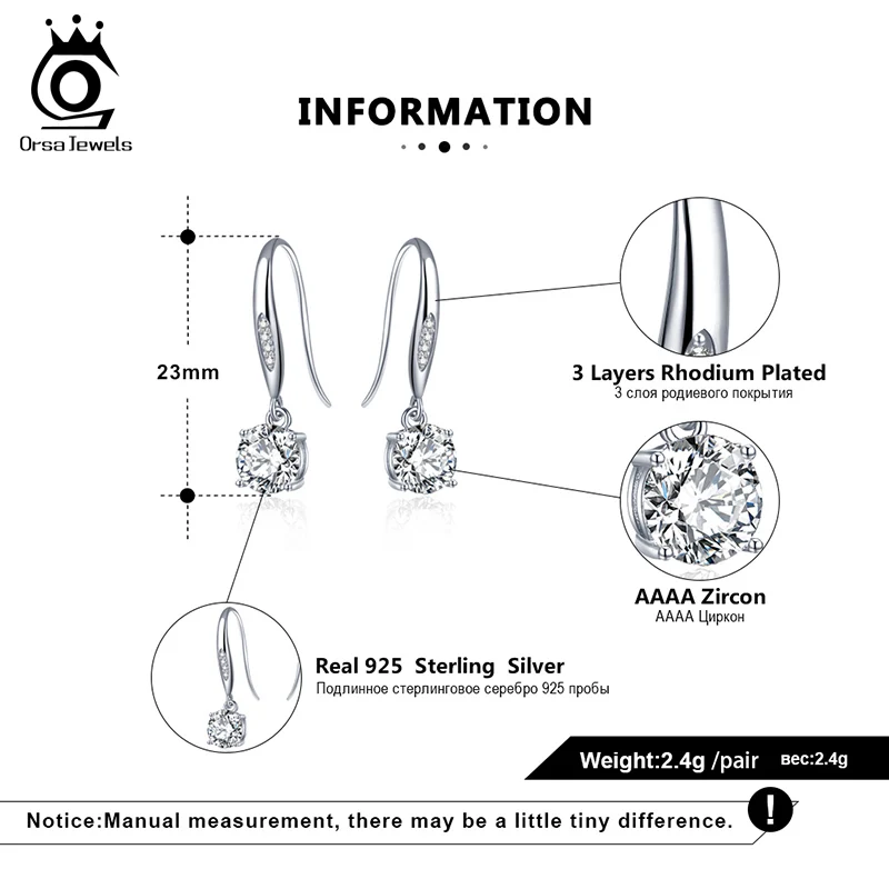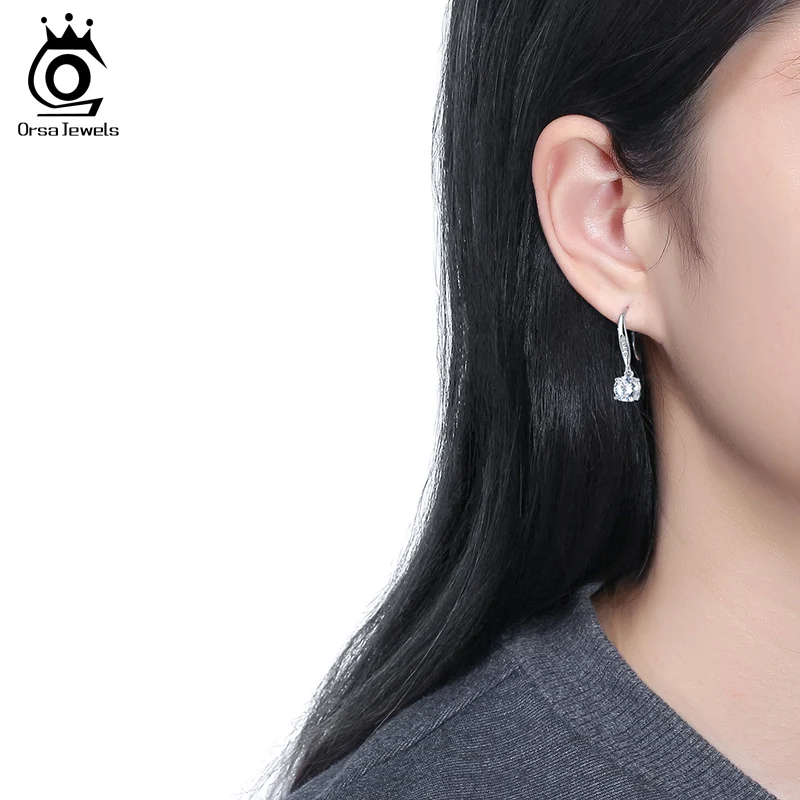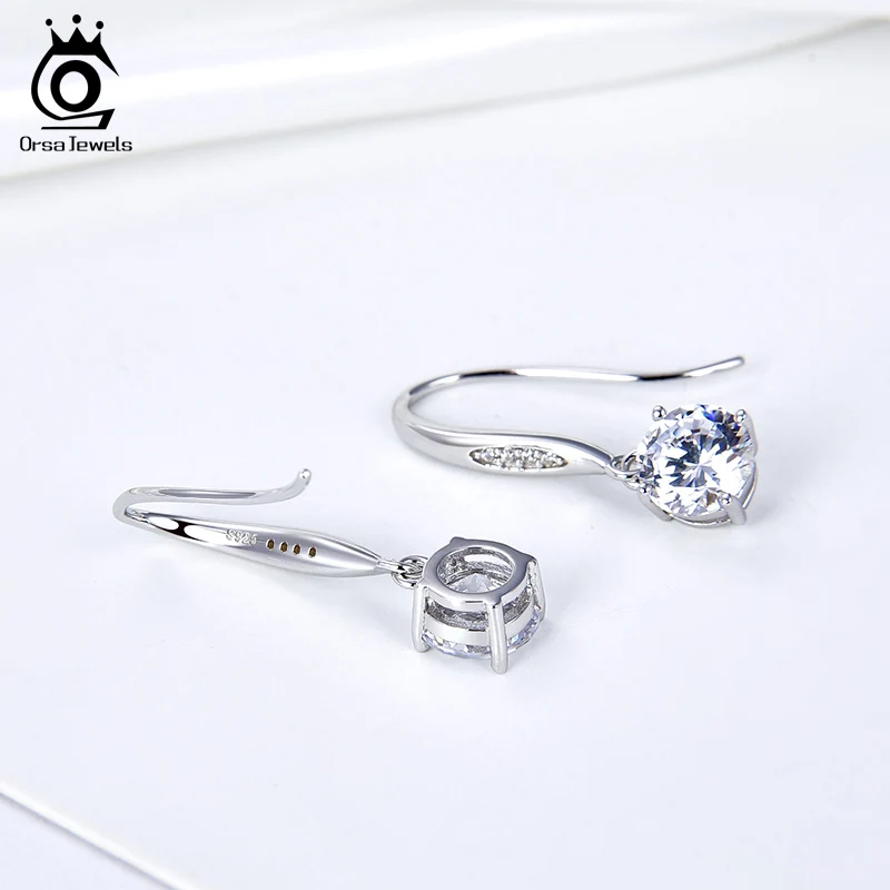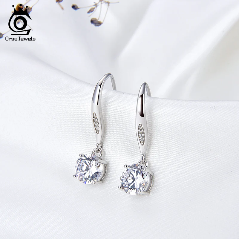 ORSA JEWELS элегантное Аутентичные 925 серебряные свадебные висячие серьги с большими прозрачными камнями 4A циркон женские ювелирные украшения подарок OSE309