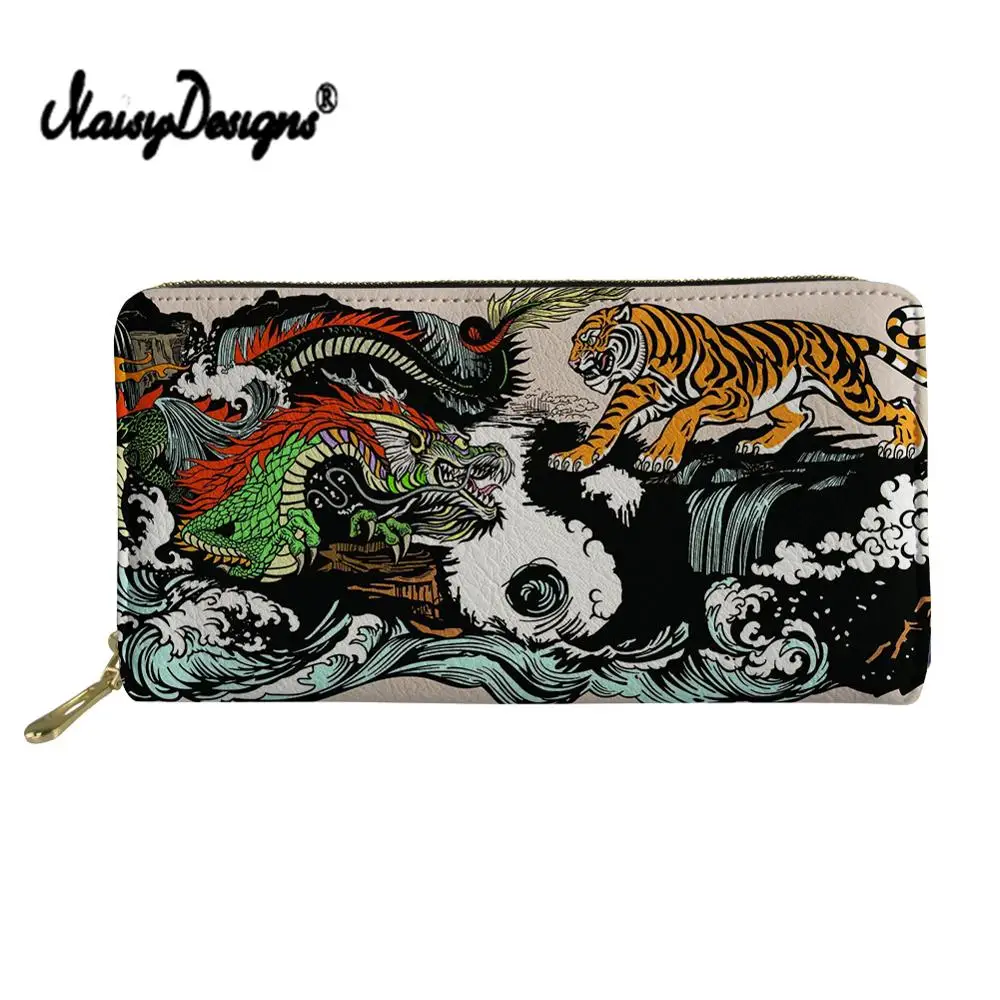 Кошелек женский из искусственной кожи, на молнии, с рисунком дракона, тигра