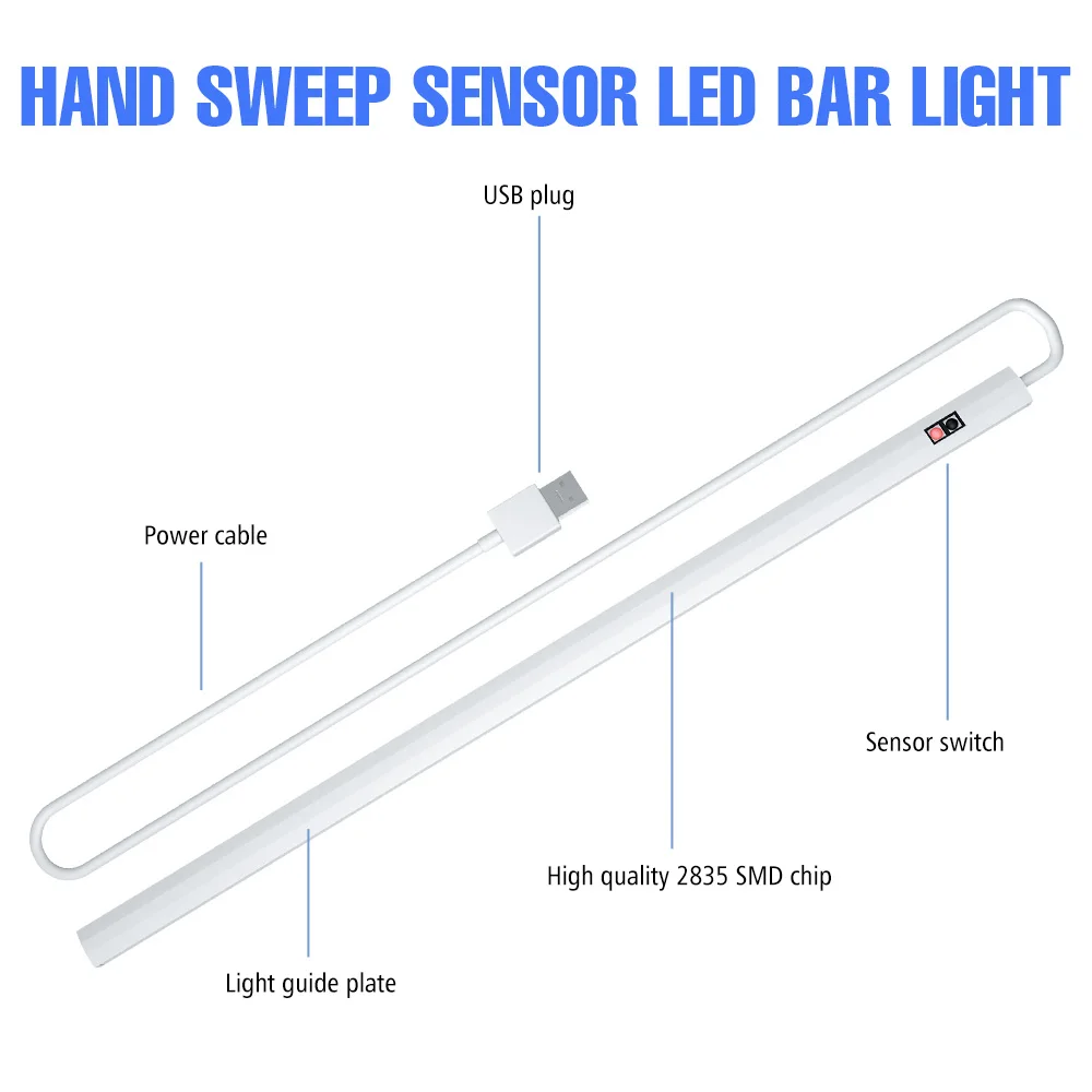 Светодиодная подсветка под шкаф сенсор USB светодиодный освещение для шкафа 5 в шкаф СВЕТОДИОДНЫЙ ночник трубка 20 30 40 50 см спальня кухня лампа 2835