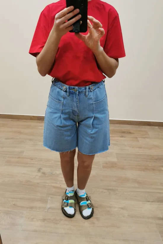 шорты очень понравились! материал очень мягкий, легкий, приятный к телу. Благодаря дополнительным пуговицам на талии, смогла уменьшить обхват до нужных мне 70 см. на мой рост 172, от 70, об 102 шорты сели великолепно! в бедрах нигде не жмёт, штанины широкие, смотрятся как юбочка. Покупкой очень довольна.