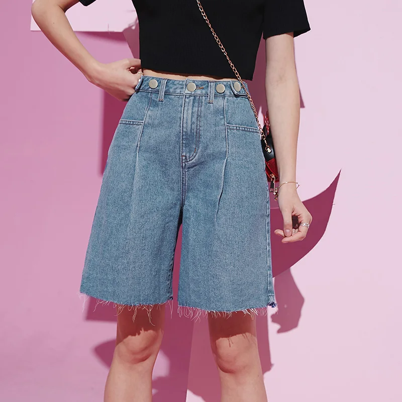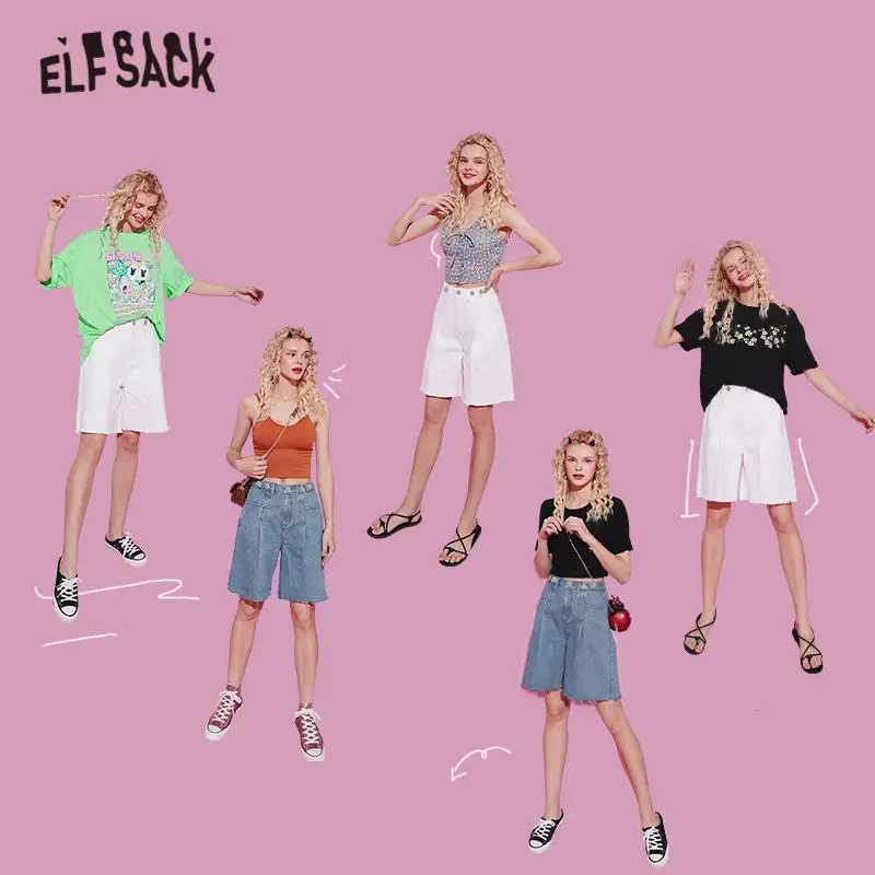 Шорты ELFSACK женские джинсовые однотонные с завышенной талией, с широкими штанинами, белые однотонные повседневные штаны в Корейском стиле ELF, лето 2020