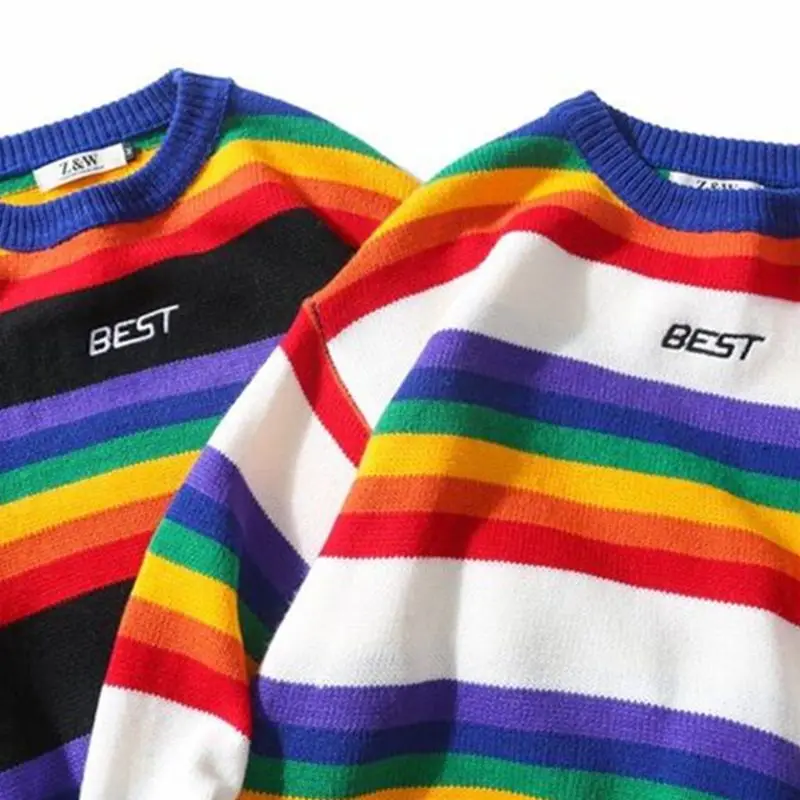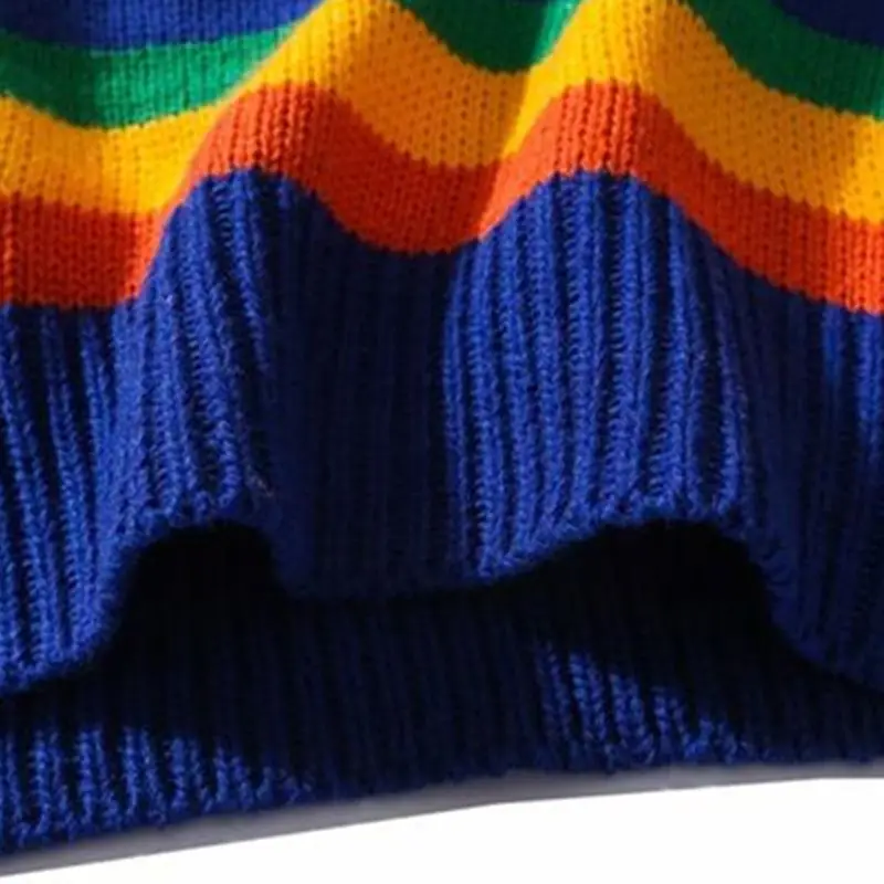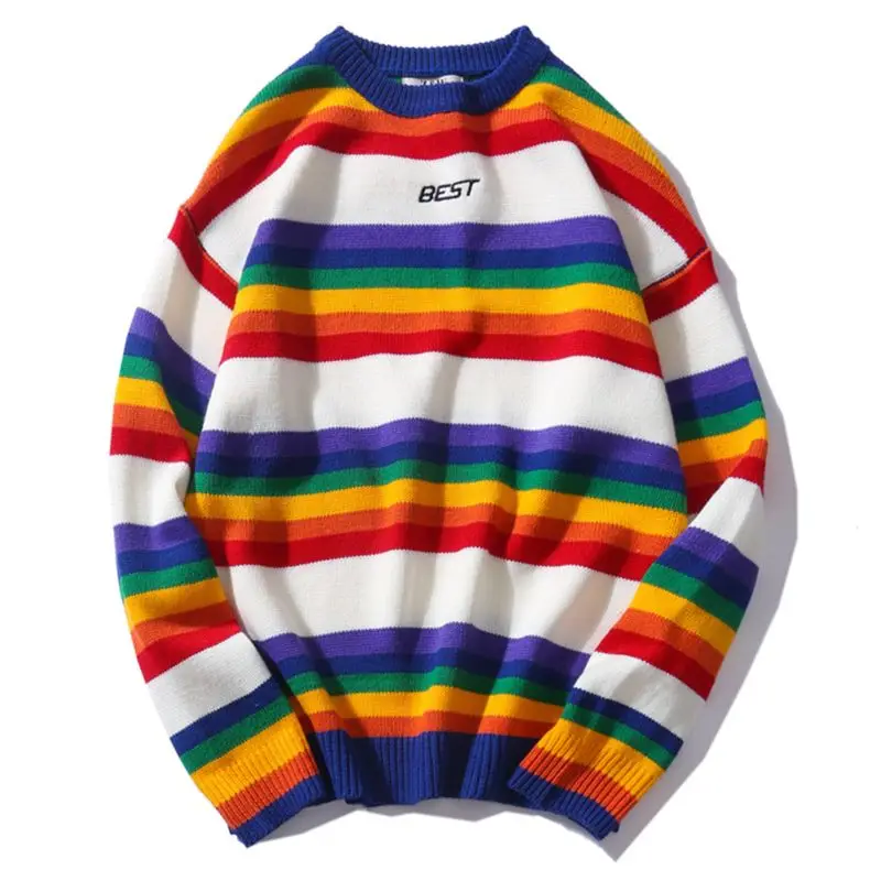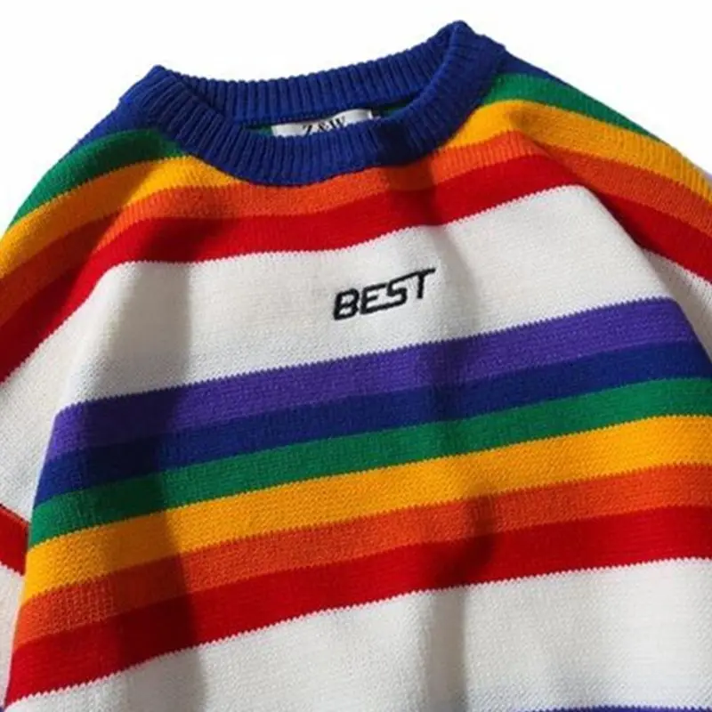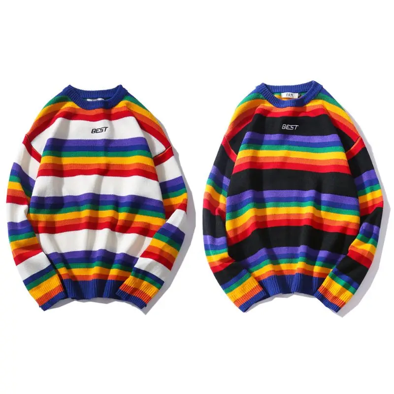 Свитер оверсайз в радужную полоску с круглым вырезом для мужчин и женщин
