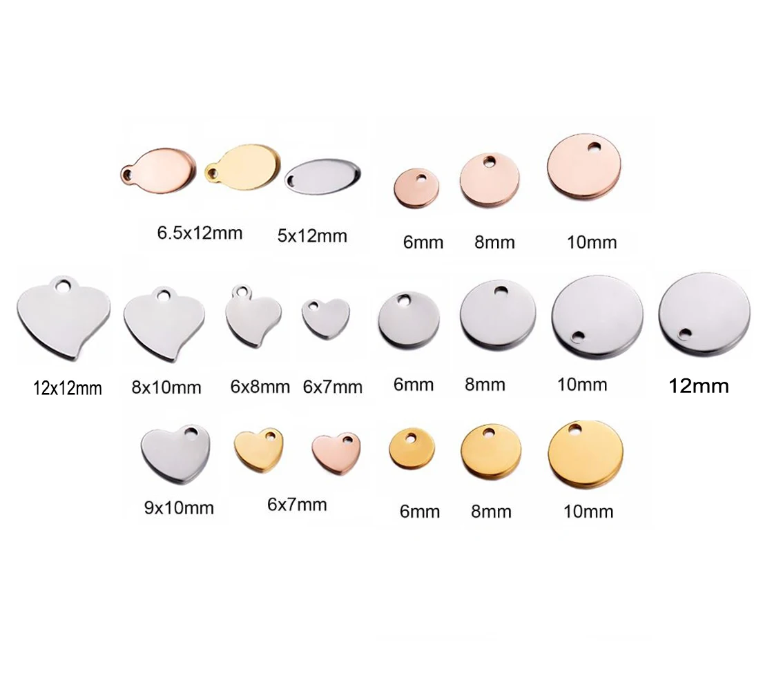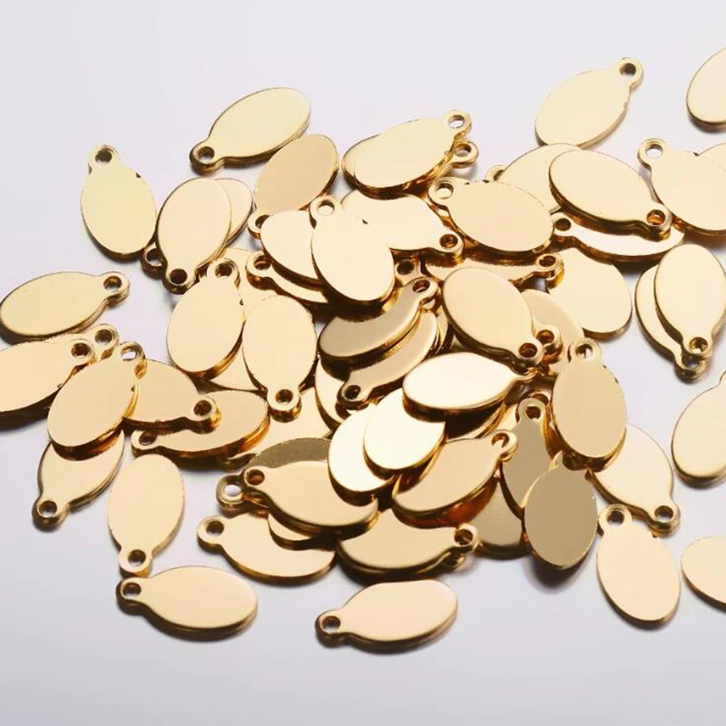 50 шт. пустые штамповочные бирки из нержавеющей стали, ожерелье с логотипом, фирменные бирки, ожерелье, сделай сам, разные размеры для логотипа, 3 цвета