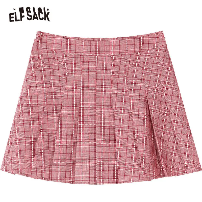 Женская плиссированная мини-юбка ELFSACK, розовая клетчатая Повседневная трапециевидная юбка трапециевидного силуэта в Корейском стиле, модель 2020 года на лето