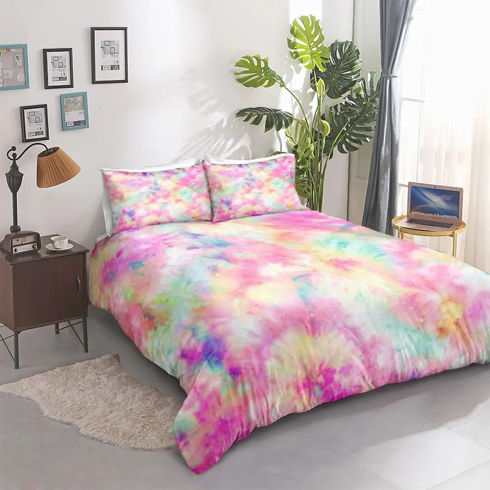 Комплект постельного белья с принтом тай-дай, комплект красочного пододеяльника, постельное белье розового цвета, домашний текстиль для девушек, комплект пастельного белья
