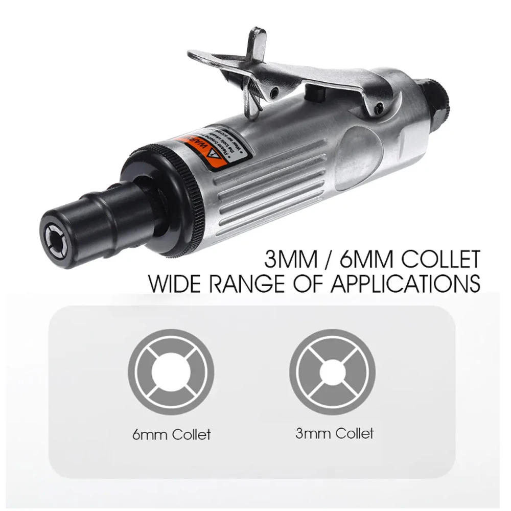 Скорость без нагрузки: 23000 об/минРазмер воздухозаборника: 1/4in BSPРабочее давление: 90 фунтов на квадратный дюймРасход воздуха: 4CFM