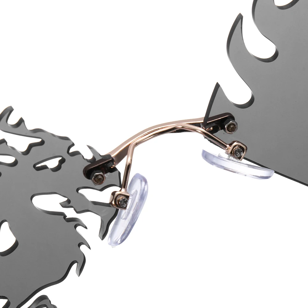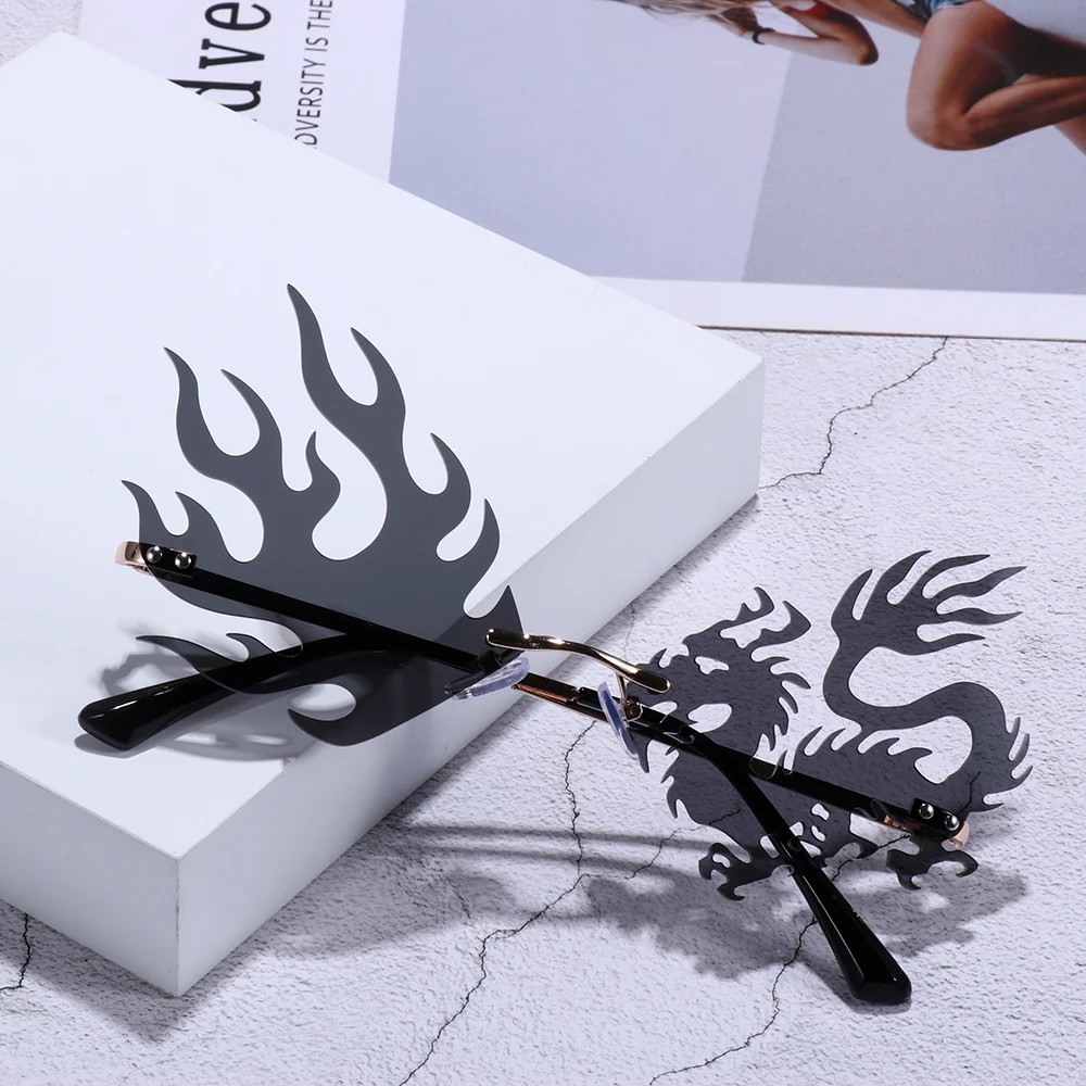 Модные солнцезащитные очки с огненным пламенем для женщин и мужчин, солнцезащитные очки без оправы в форме волны, УФ 400, роскошные трендовые узкие солнечные очки, уличная одежда