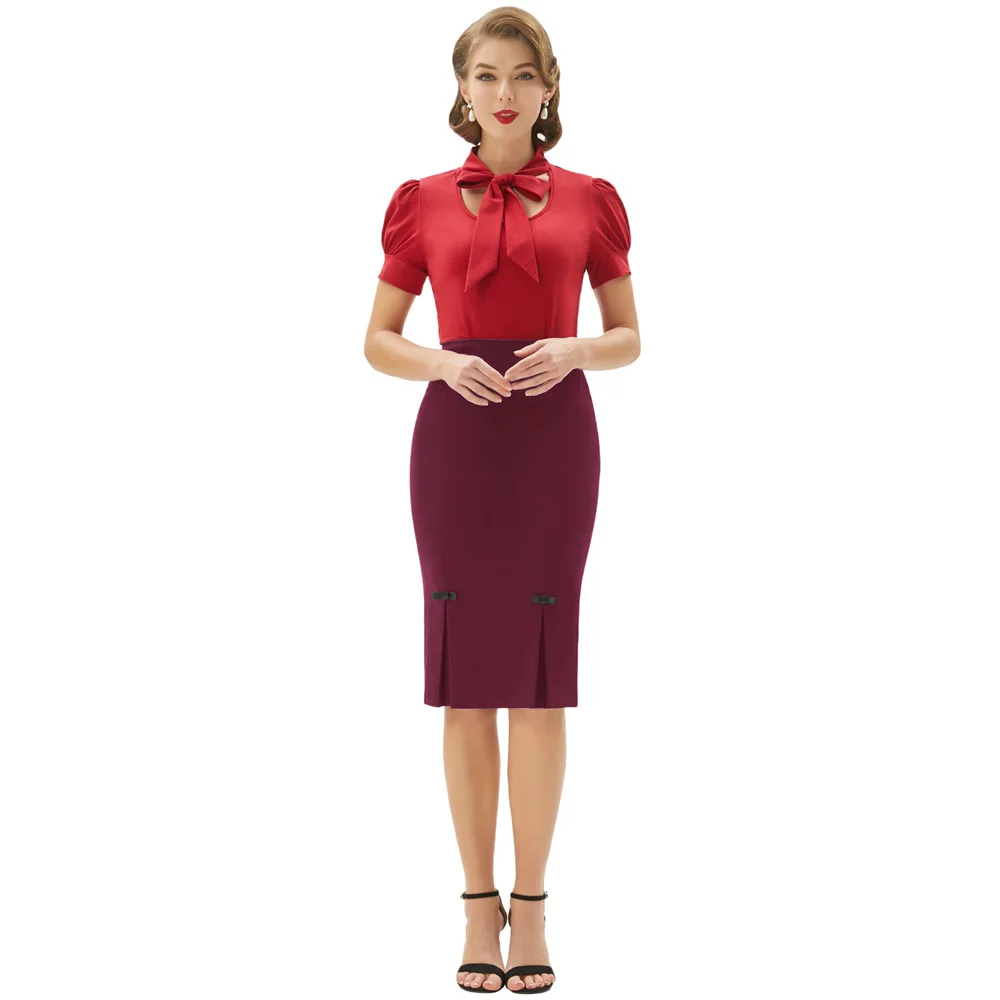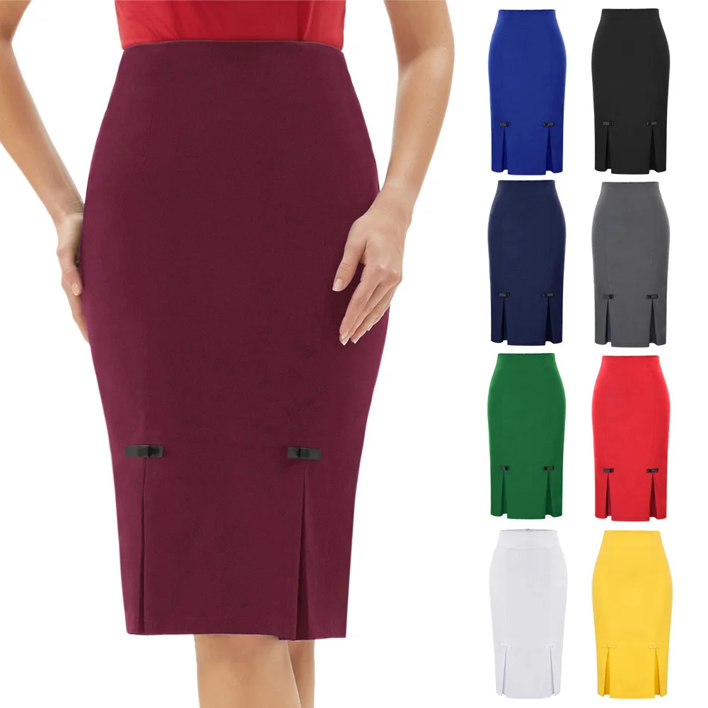 Женская облегающая юбка-карандаш с бантом, в офисном стиле