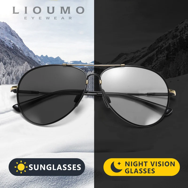 Очки-авиаторы LIOUMO поляризационные для мужчин и женщин, большие солнцезащитные фотохромные очки в металлической оправе с эффектом памяти, 2020