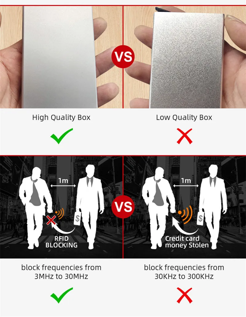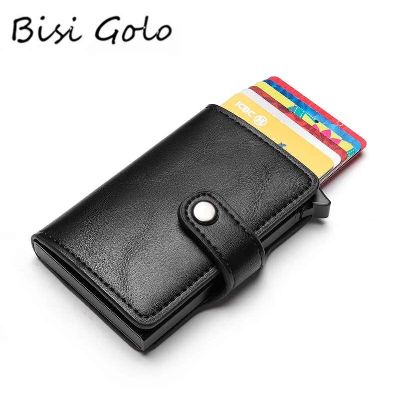 Повседневный держатель для карт BISI GORO, защитный чехол для смарт-карт с застежкой, Металлический Алюминиевый футляр с технологией RFID, тонкий мужской и женский держатель для удостоверения личности из искусственной кожи