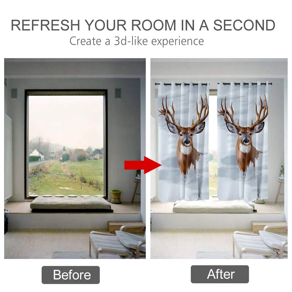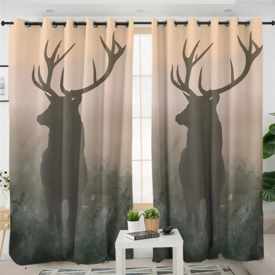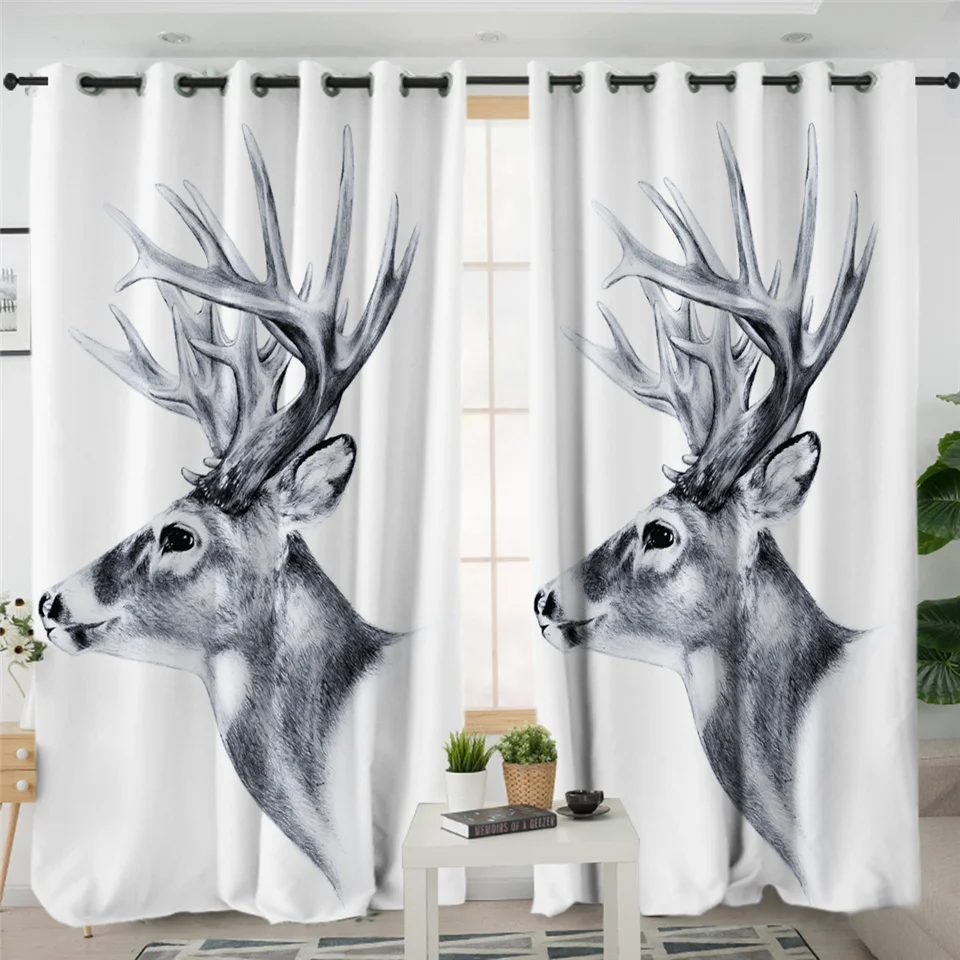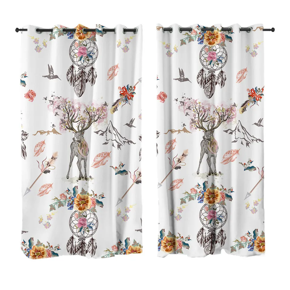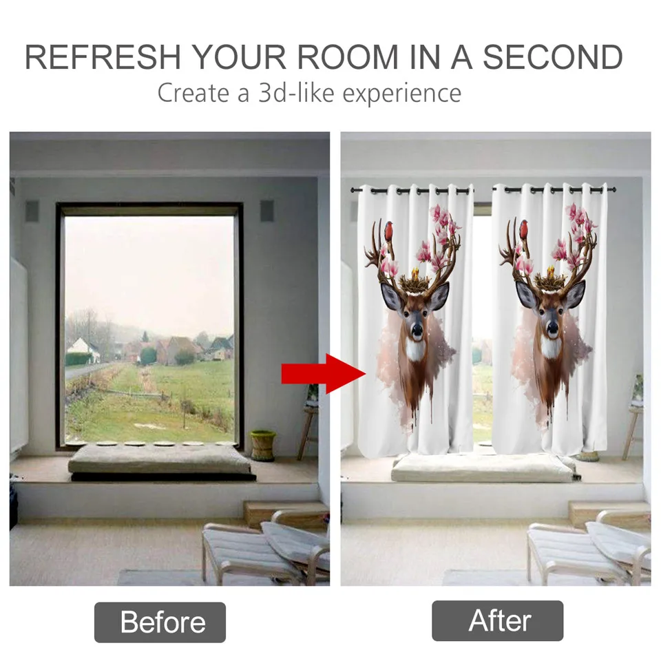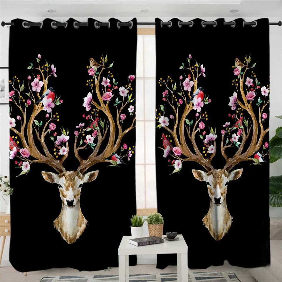 Занавески на окна BeddingOutlet с изображением лося и птиц, цветочные занавески с оленями, животные, акварельные, розовые цветы, занавески для спальни