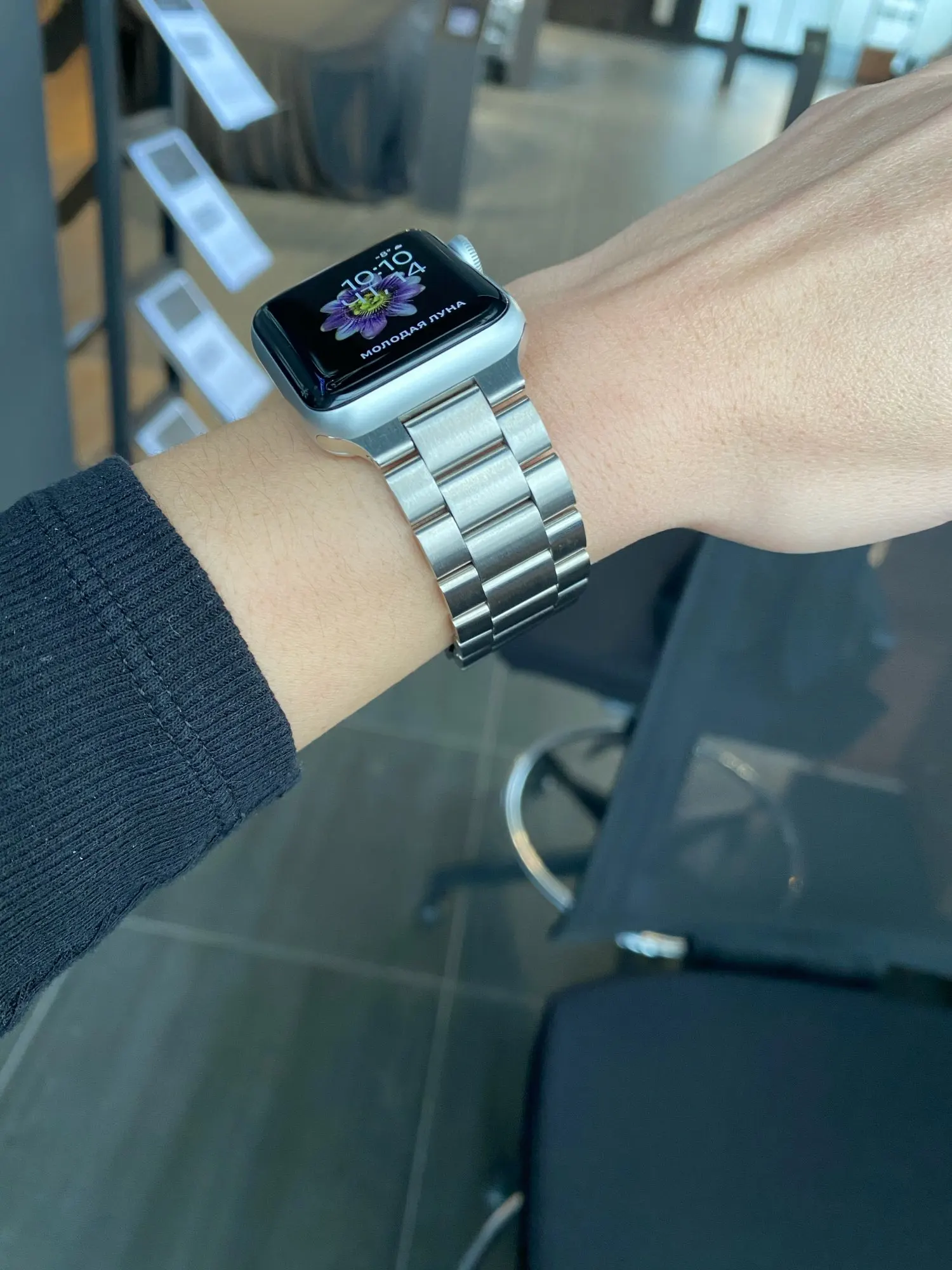 Заказал металлический ремешок на 38 мм. Пришёл вовремя! Качество хорошее! Ношу уже месяц, ничего не потерлось и всё замок работает отлично! Рекомендую!