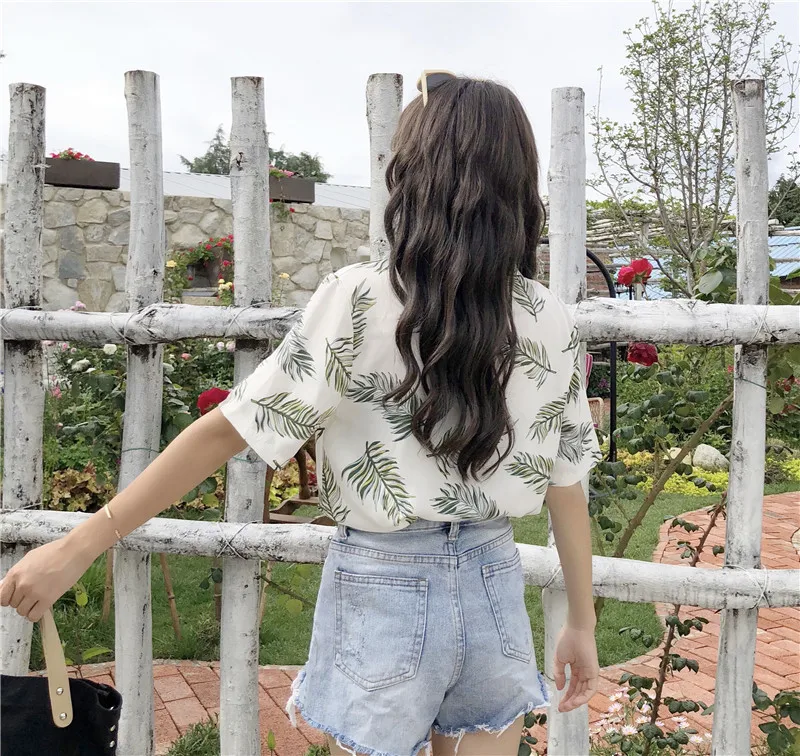 Модные женские шифоновые блузки в гавайском стиле, рубашки, повседневные блузки для девочек, топы, рубашки с коротким рукавом и цветочным принтом, летние свободные топы