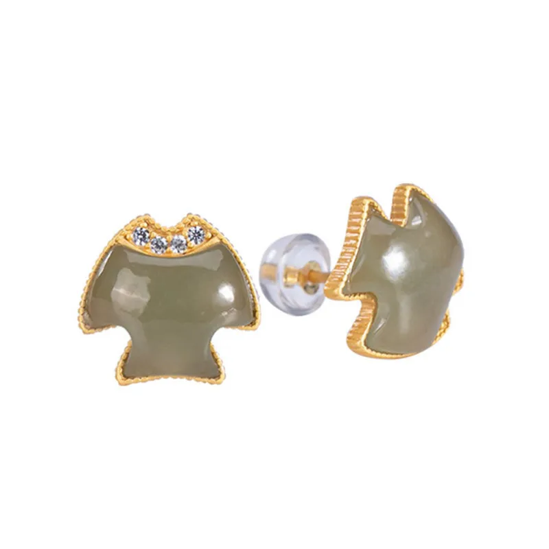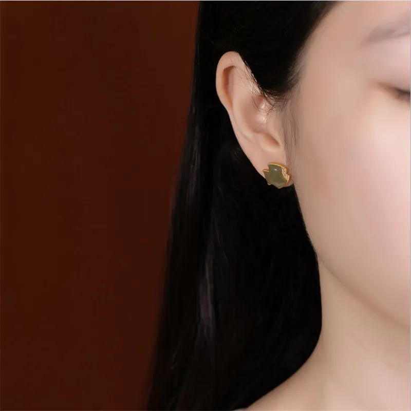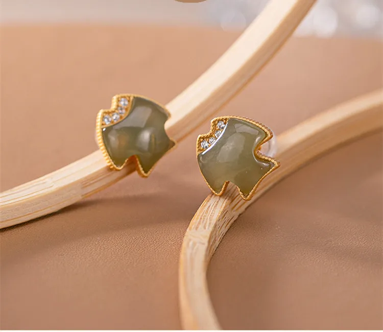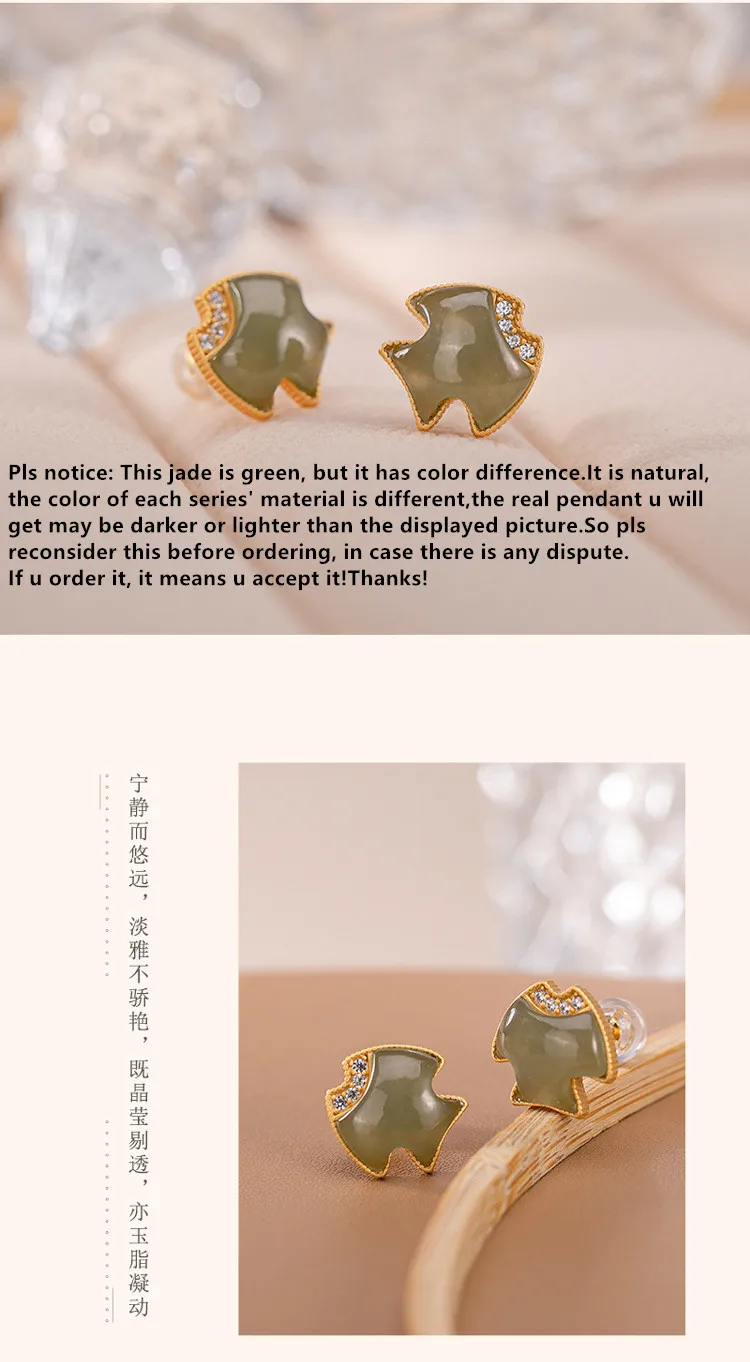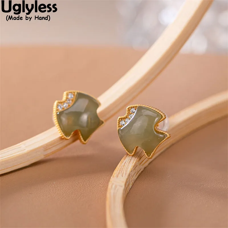 Женские серьги-гвоздики Uglyless в виде тропической рыбы, золотистые серьги из серебра 925 пробы с натуральными нефритовыми рыбами, маленькие украшения