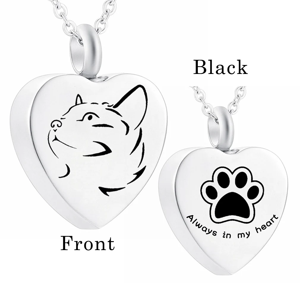 Нержавеющая сталь в память о кошке кулон сердце, ПЭТ лапа печать урна ожерелье для праха кремации ювелирный костюм подарок бархатная сумочка