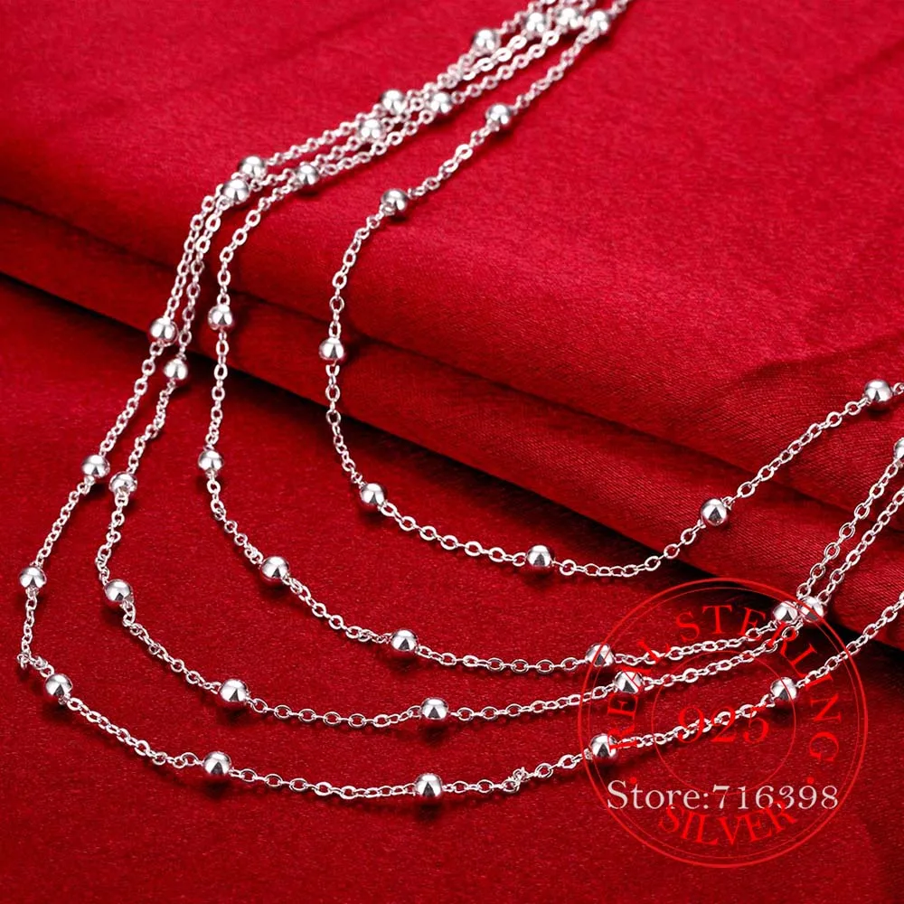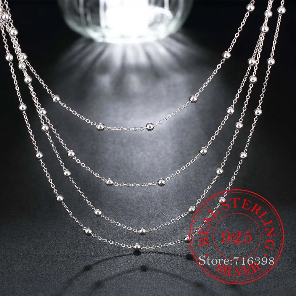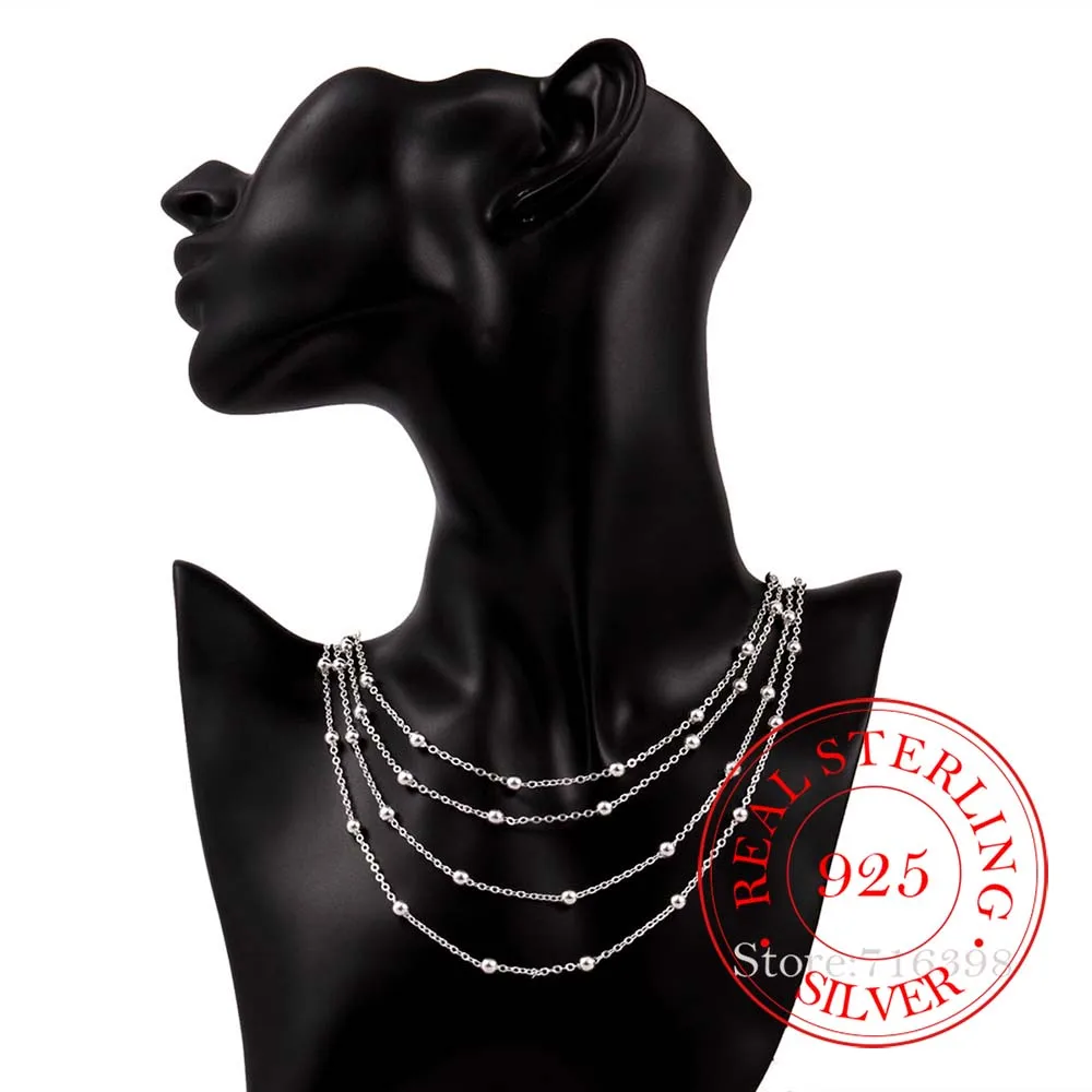 Elegant Women's Accessory Multilayers Beads Design Long Chain 925 Sterling Silver Fashion Necklace For Women Wedding Party Gift