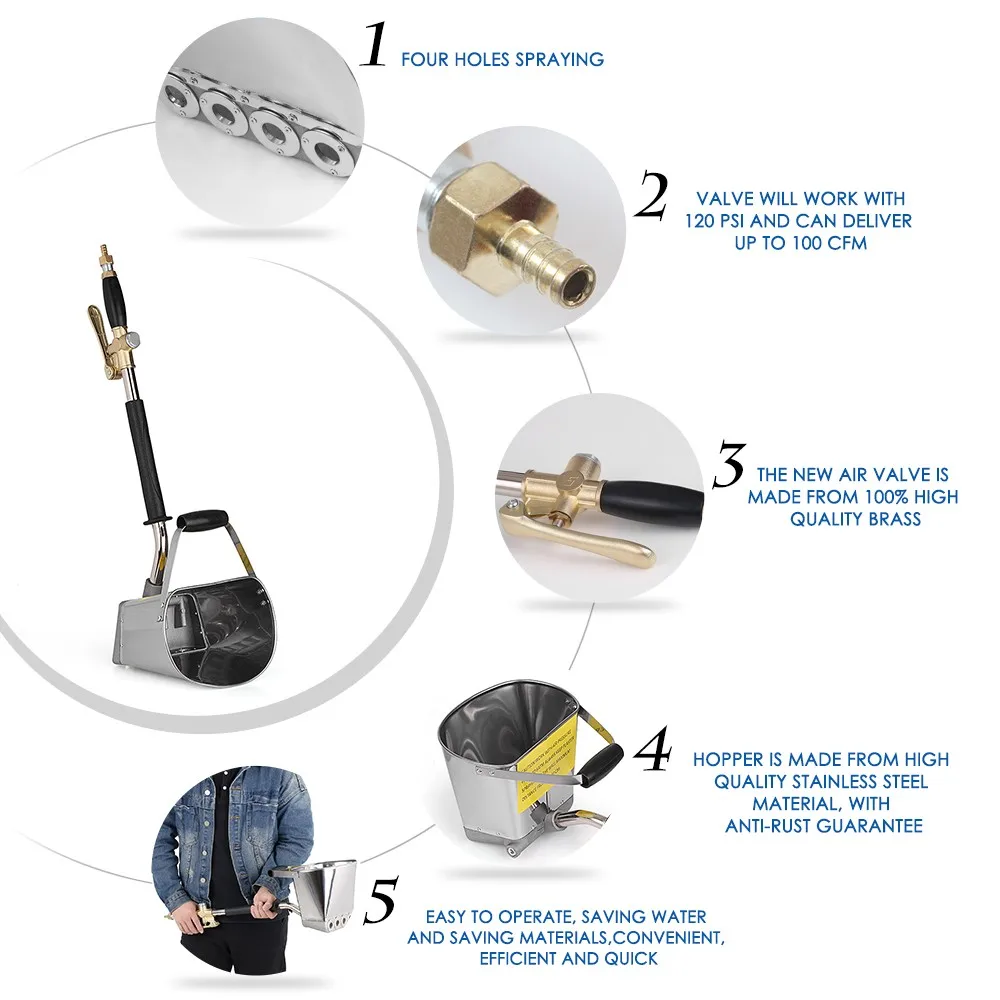 Особенности:1. Удобный минометный пистолет для традиционной штукатурки, такой как одно пальто или три пальто штукатурки или GFRC.