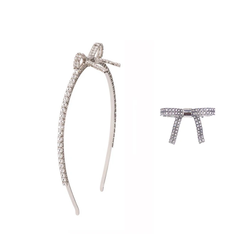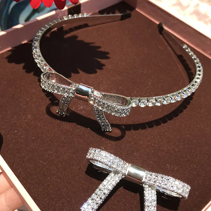 Женский ободок с кристаллами, серебристого цвета, вечерние свадебные аксессуары, подарочный набор