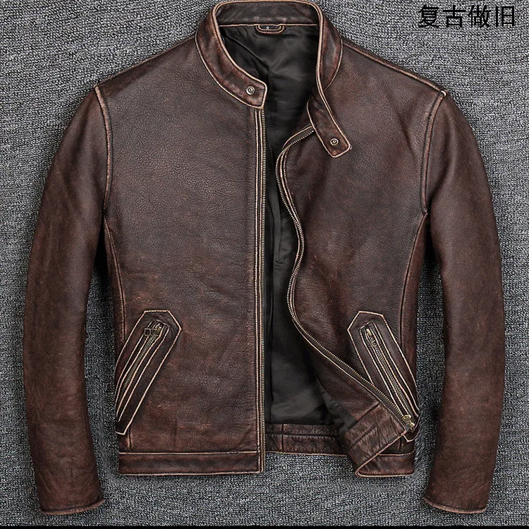 Куртка мужская из натуральной овечьей кожи, размера плюс, 1805