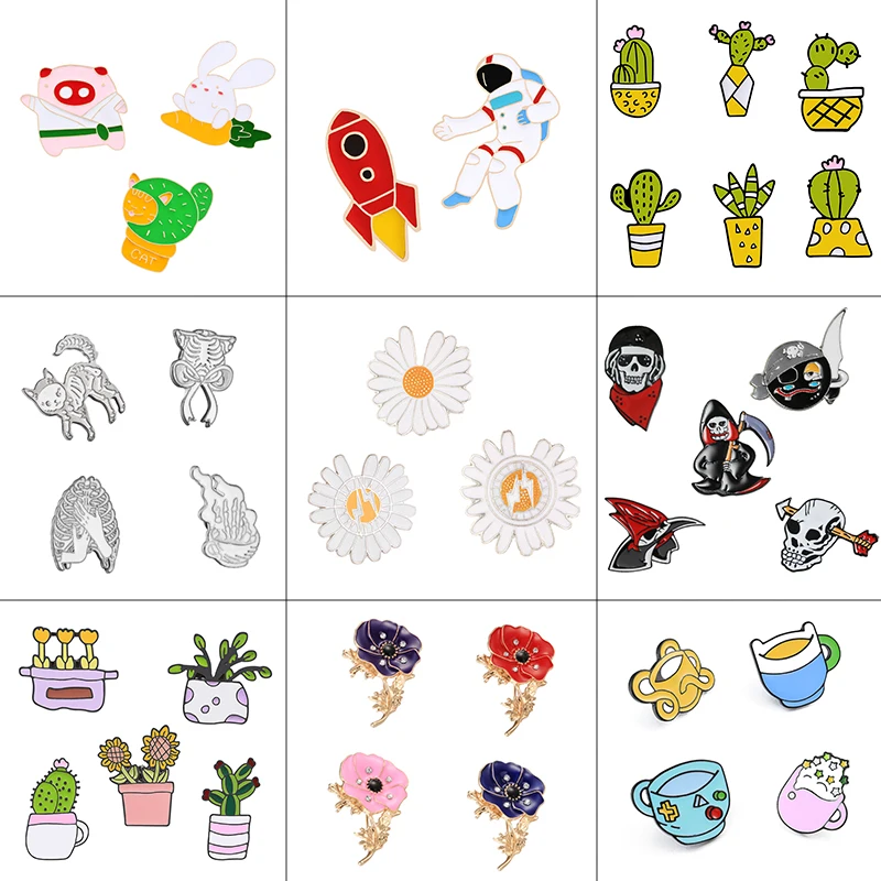 2 6 шт.компл. цветок, Череп, чашка в горшке, астронавт, эмалированная брошь, джинсовые куртки, рюкзак, лацкан, значок, Мультяшные булавки, ювелирные изделия для детей