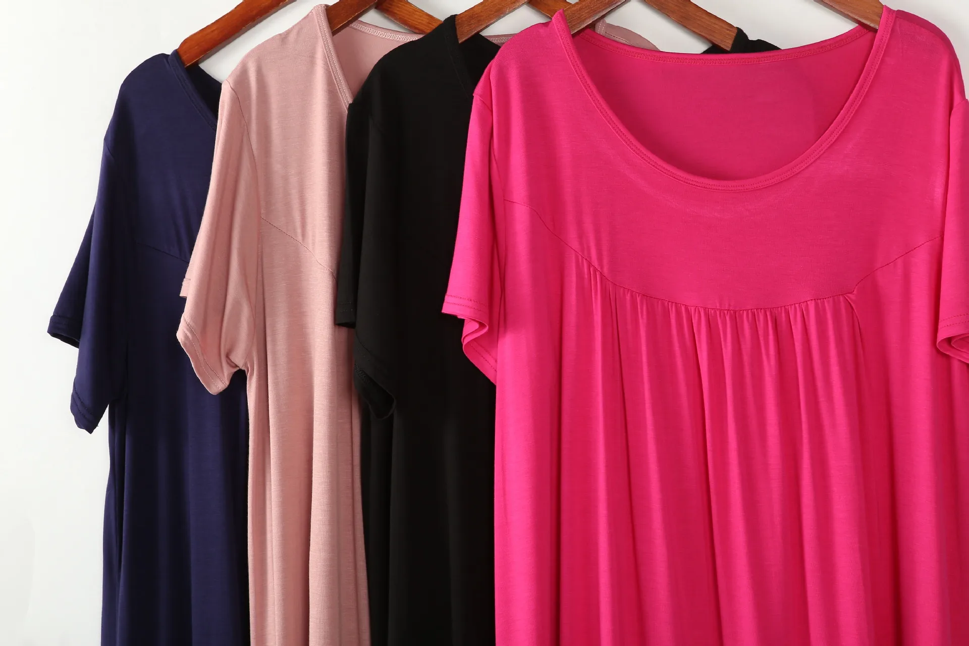 Женская ночная рубашка размера плюс 2XL-7XL, свободная хлопковая ночная рубашка для сна, свободная однотонная одежда для сна, мягкое женское домашнее белье, ночная рубашка