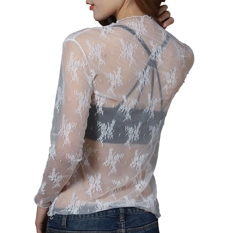 Летняя женская кружевная блузка с цветочной вышивкой, рубашка, женские топы, сексуальные сетчатые блузки, прозрачная элегантная Прозрачная черная рубашка
