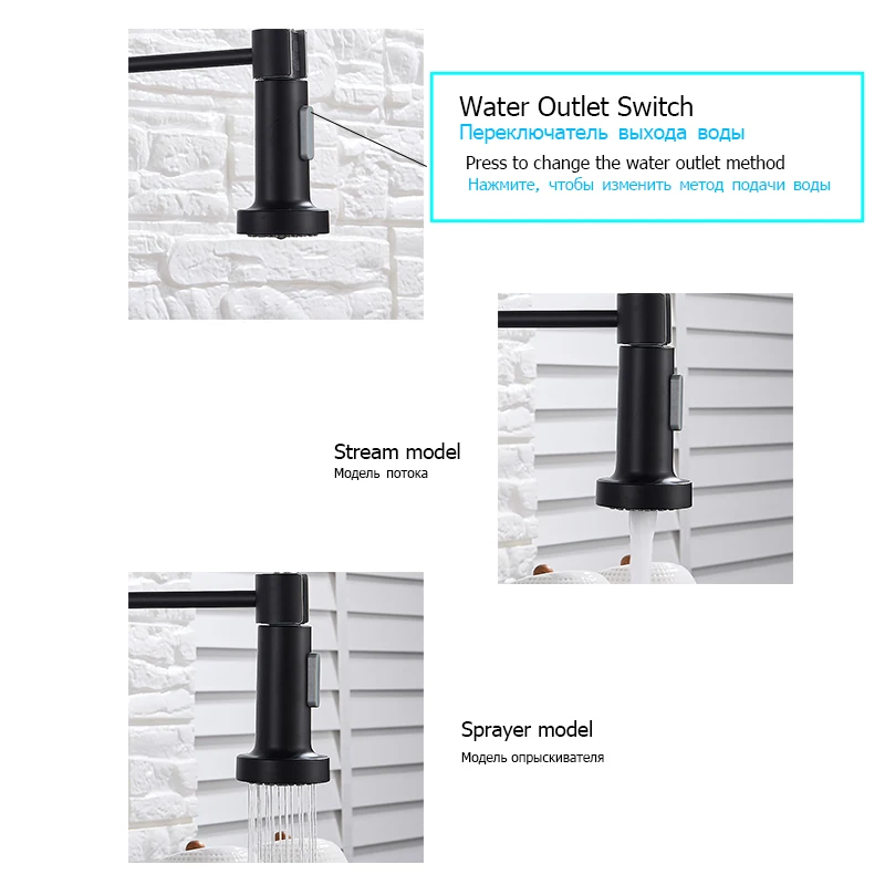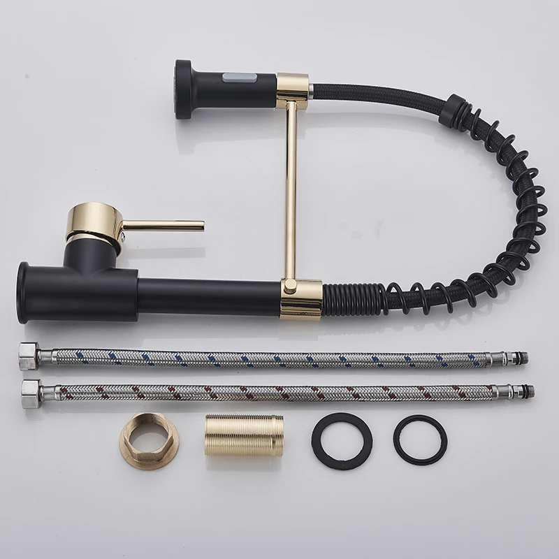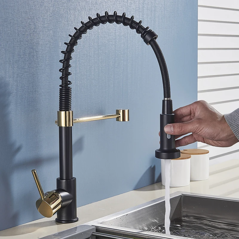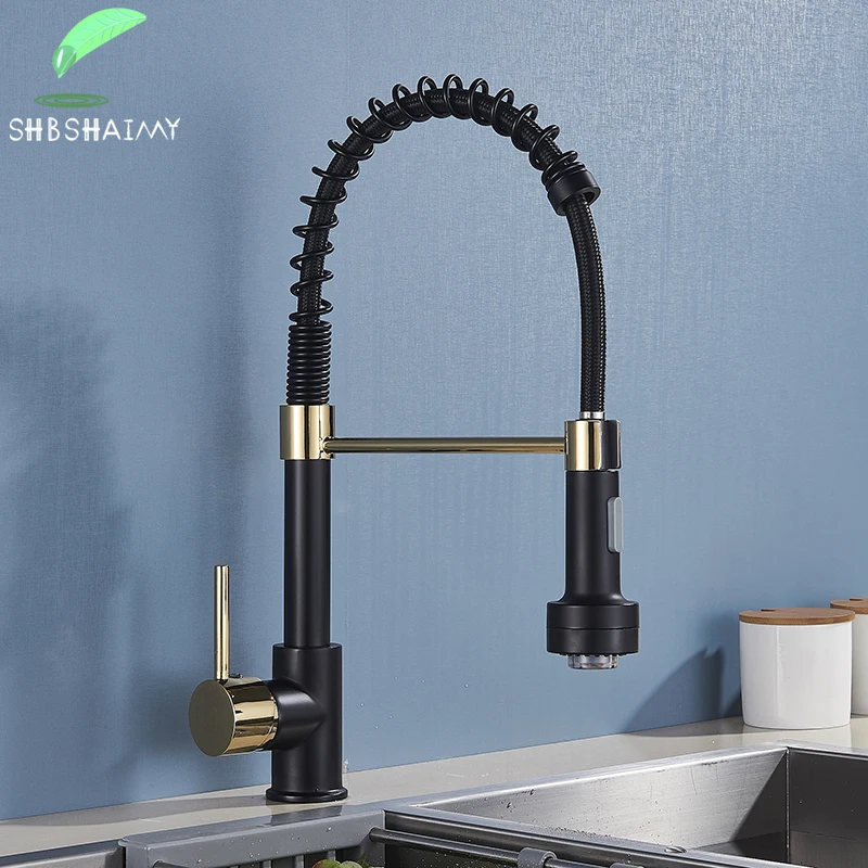 Смеситель для кухонной мойки SHBSHAIMY, черный и золотой кран с поворотом на 360 градусов, крепление на раковину, двойной режим воды, выдвижной, смеситель горячей и холодной воды Tap