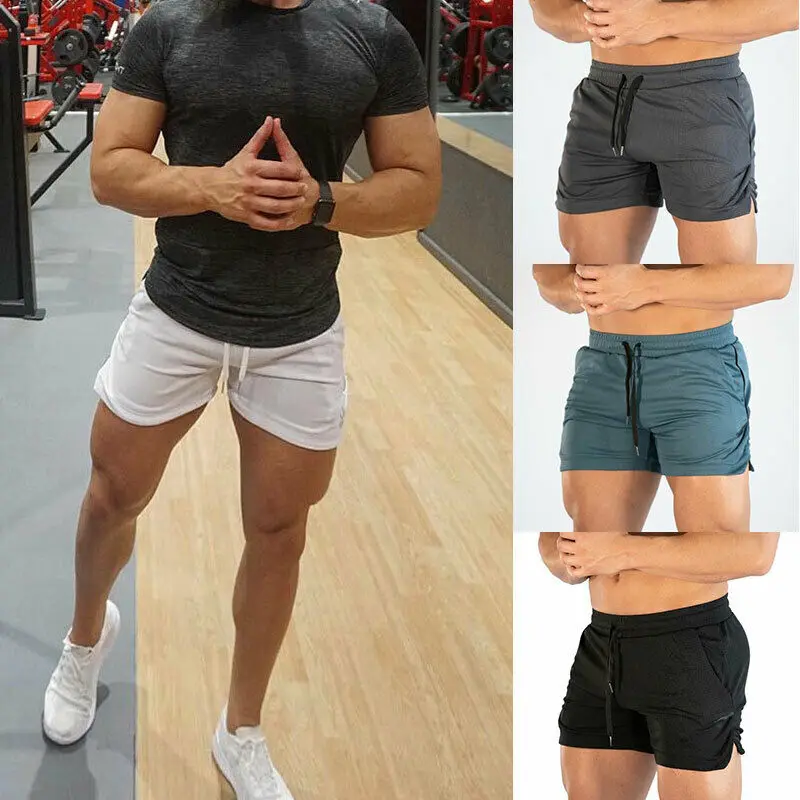 Новинка 2020, шорты для бега, мужские спортивные шорты для бега и фитнеса, летние повседневные мужские шорты для тренировок в тренажерном зале, однотонные спортивные шорты для фитнеса