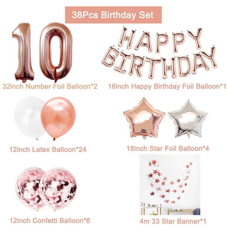 2 шт. 32 дюймов воздушные шары из фольги в виде цифр1 комплект 16 дюймов фольга письма с поздравлениями с днем рождения воздушные шары4 штуки, 18 дюймов воздушные шары из фольги в форме звезды6 шт. 12 дюймов конфетти воздушные шары12 шт 12-дюймовые прозрачные перламутровые латексные шары12 шт 12-дюймовые латексные воздушные шары из розового золота с жемчугом1 шт 4 метра бумажный Звездный баннер