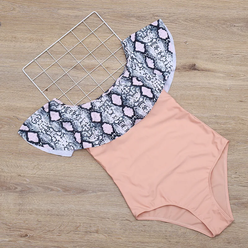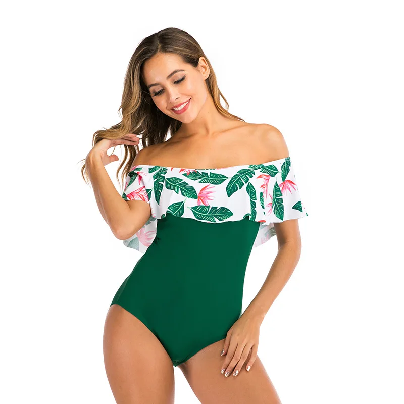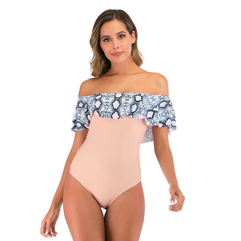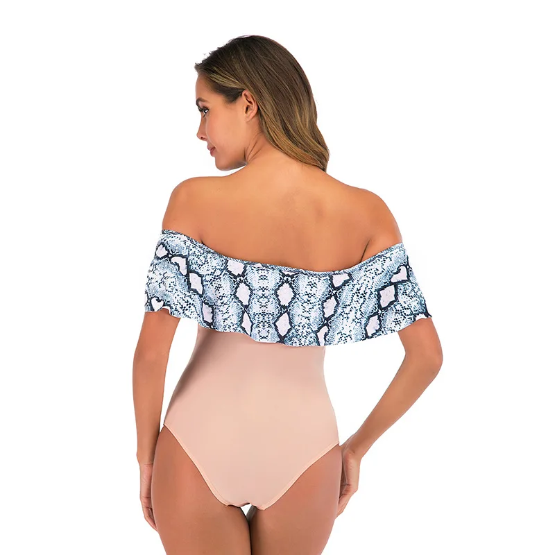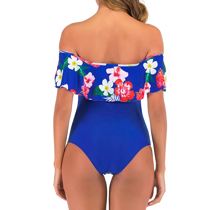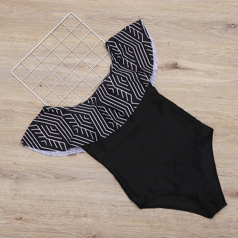 Сексуальный женский слитный купальник с открытыми плечами и оборкам...
