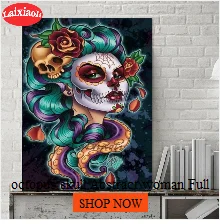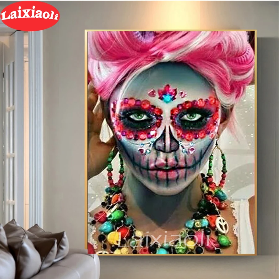 5d Diy Алмазная картина с черепом женская картина полностью квадратная круглая Алмазная вышивка подарок на Хэллоуин мозаика аксессуары для домашнего декора