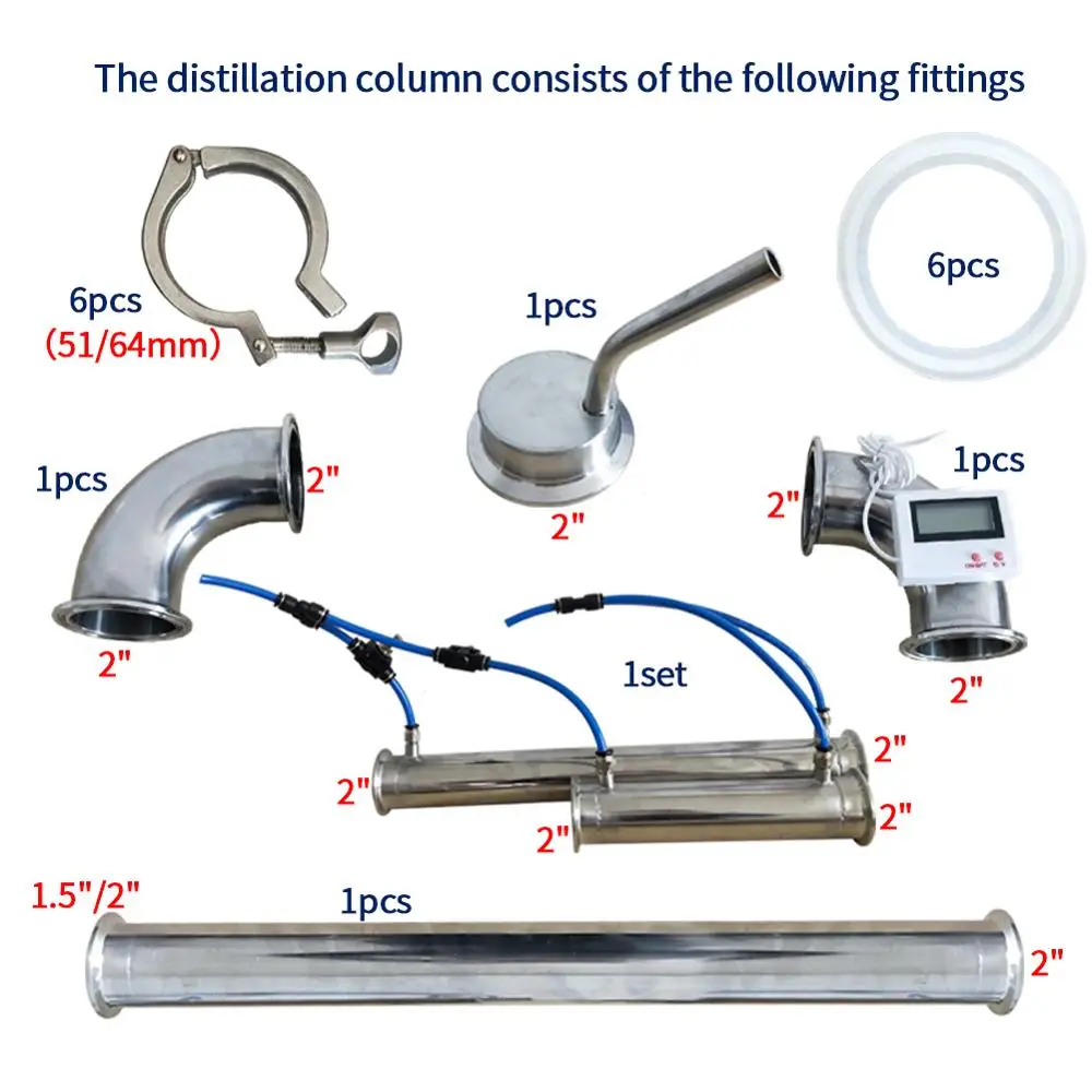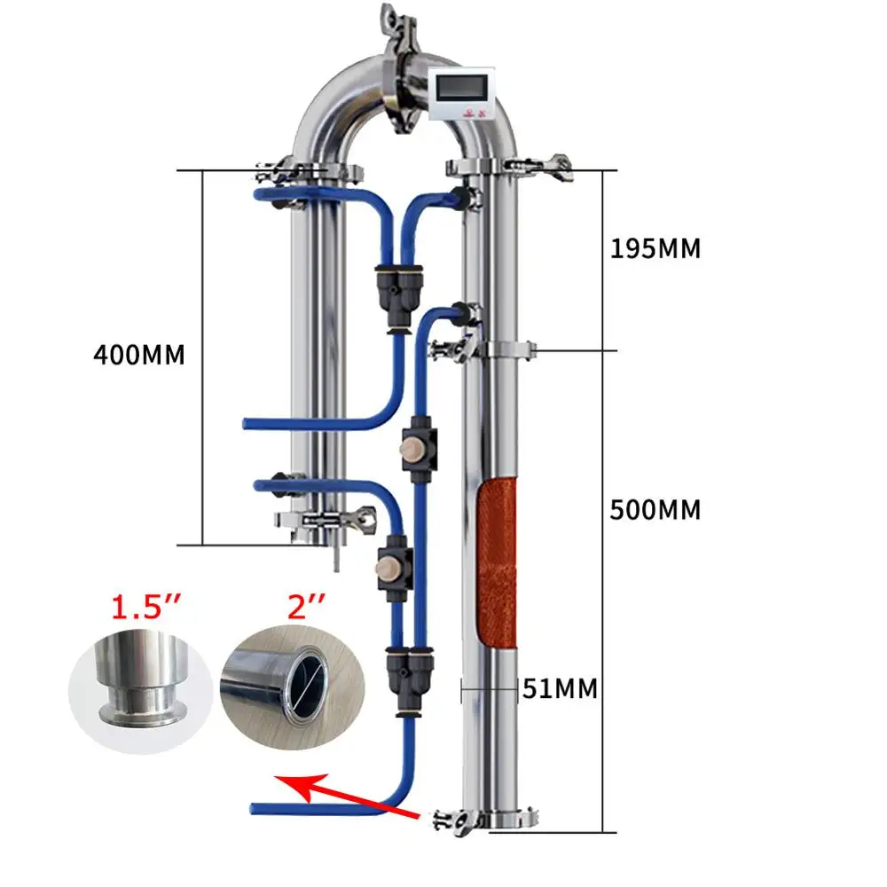 Трубчатая дистилляционная колонна 1,5 "2" для производства спирта, бренди, виски, водки, самогона, дистиллятор с медная сетка
