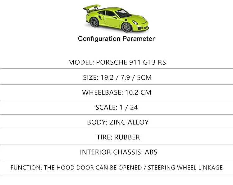Модель автомобиля Welly 1:24 Porsche 911GT3 RS из сплава, отлитые и...