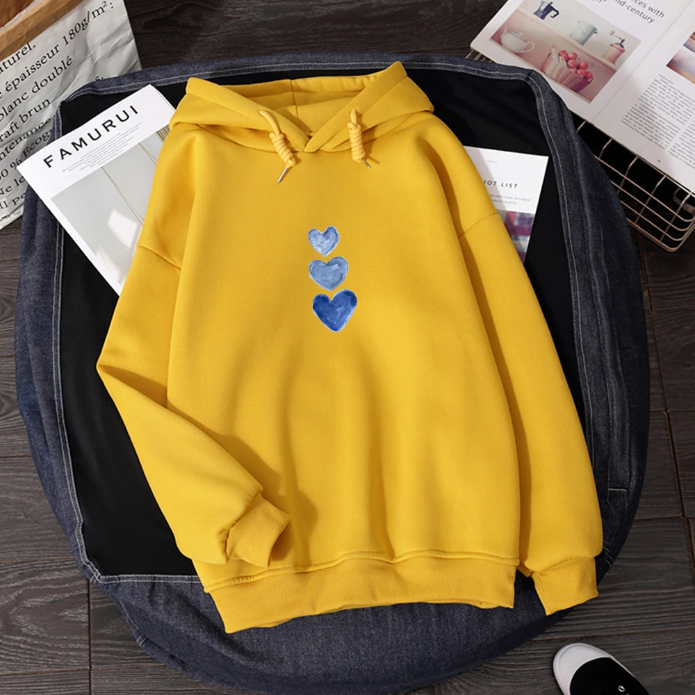 Женские зимние толстовки с длинным рукавом в стиле Харадзюку, толстовки с капюшоном в Корейском стиле Ulzzang Loves Heart Print