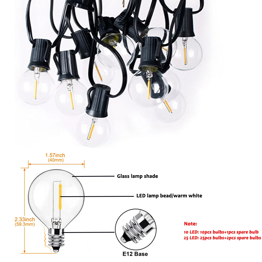 Светодиодные прозрасветодиодный лампы G40 1025 на солнечной батарее, уличная сказочная светодиодная гирлянда, водонепроницаемая Гирлянда для укравечерние, двора, праздничного сада