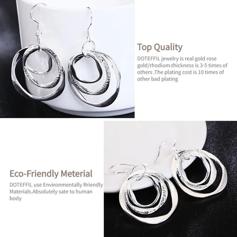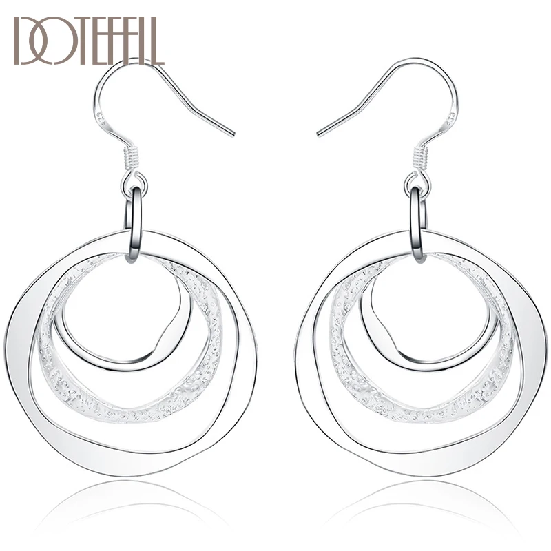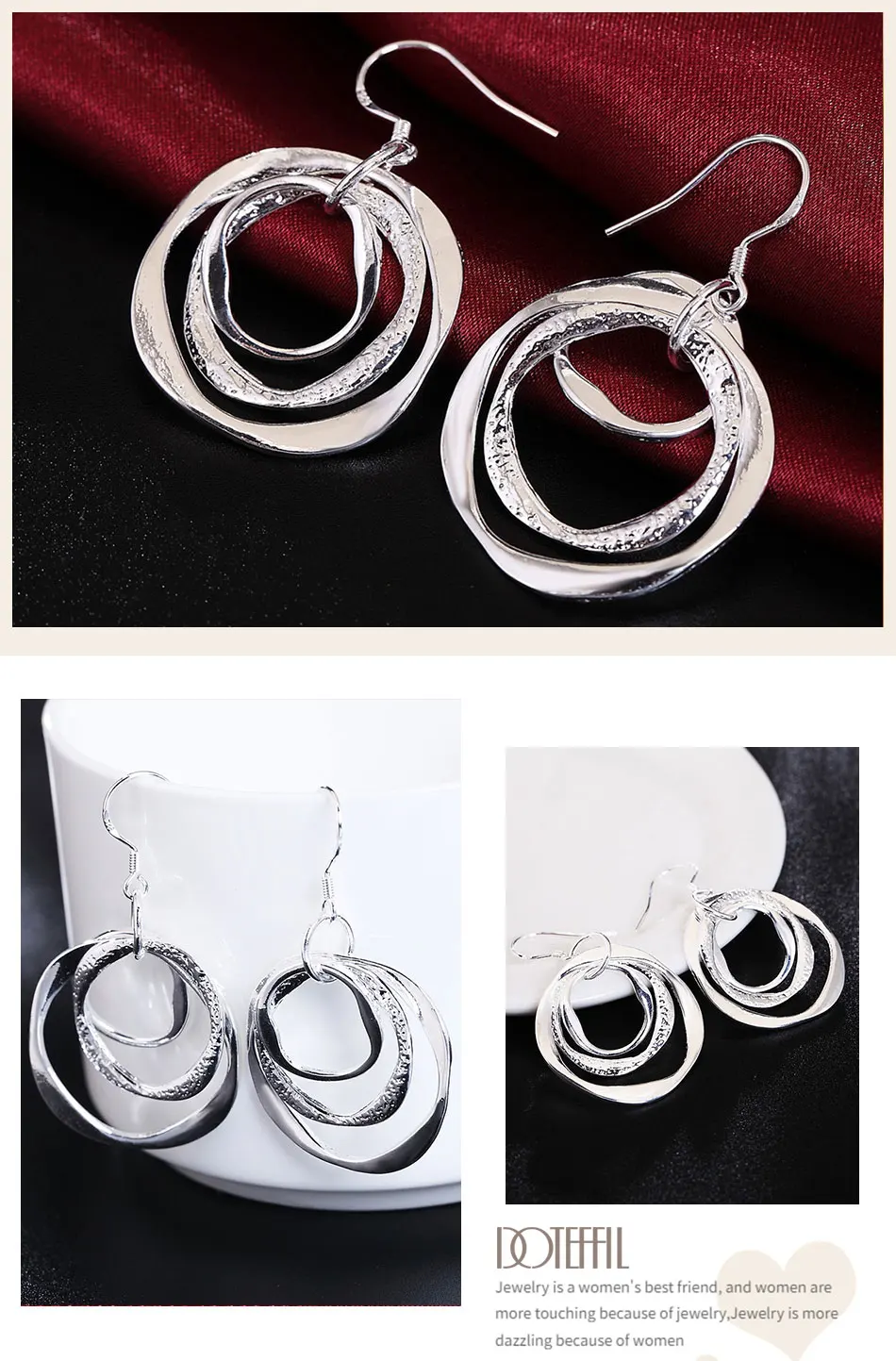 Женские серьги-подвески DOTEFFIL, три круга, из серебра 925 пробы, для свадьбы, помолвки, вечеринки, модные ювелирные украшения