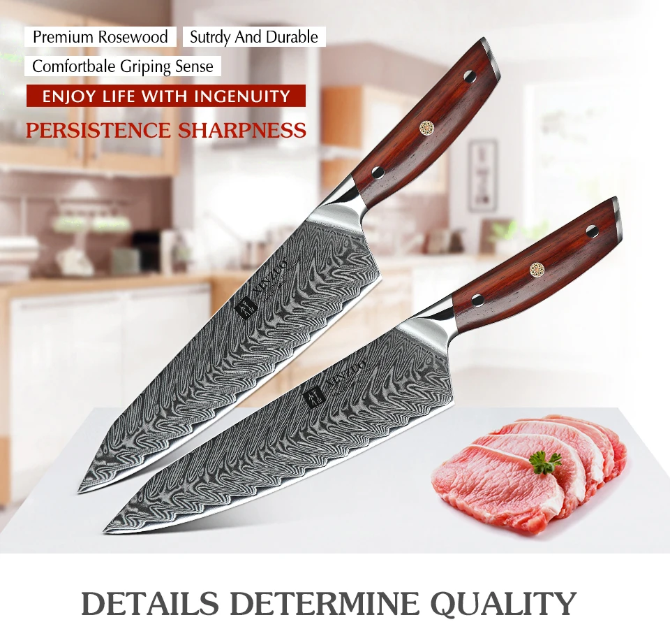 XINZUO 8,5 'дюймовые ножи шеф-повара Дамасская сталь японские кухонные ножи дамаск VG10 ножи из нержавеющей стали с ручкой из розового дерева