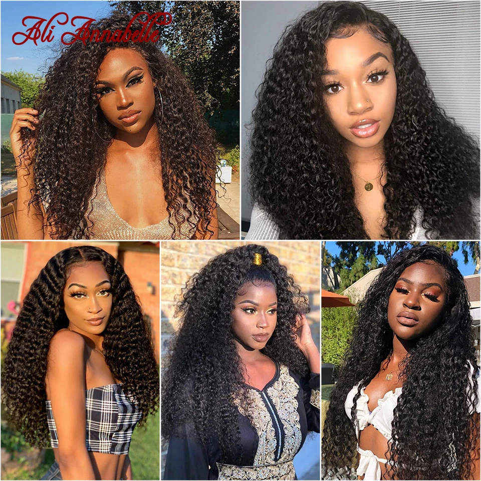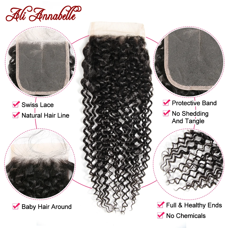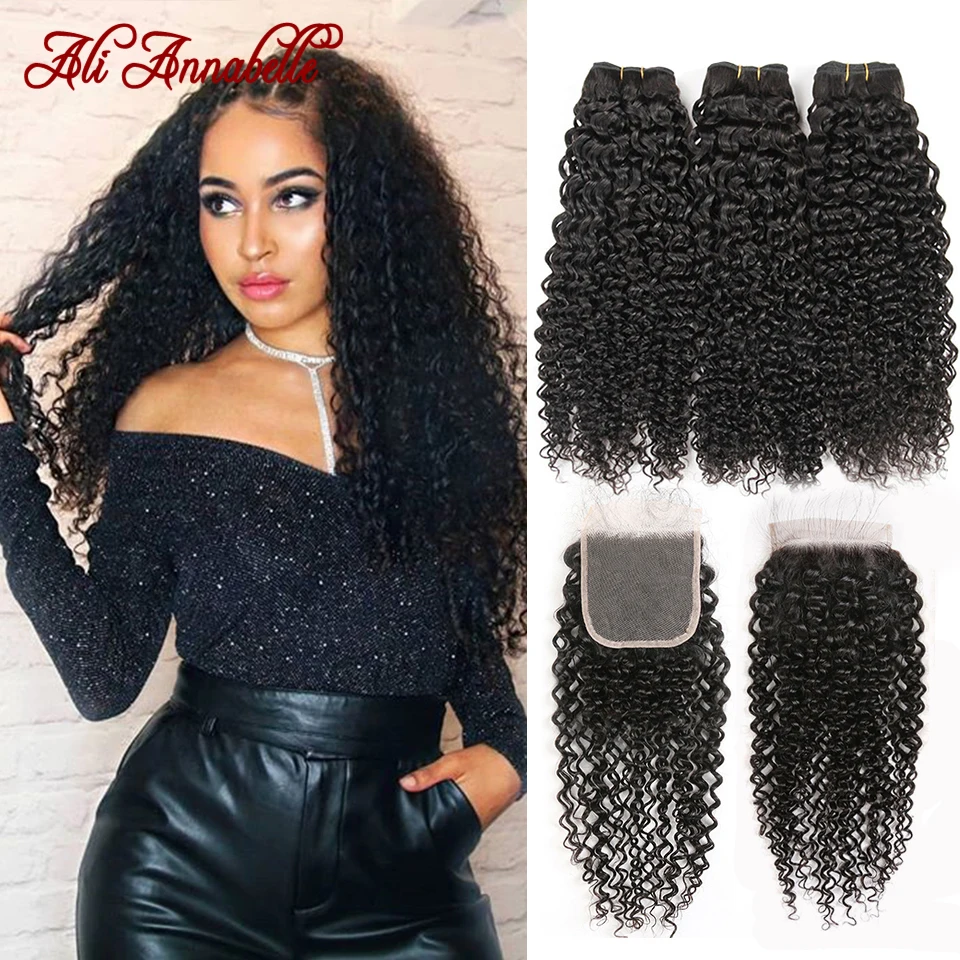 Али ANNABELLE волосы курчавые человеческие волосы пряди с закрытием 100% Remy пряди человеческих волос для наращивания, вплетаемые пряди сделка застежка предварительно вырезанные