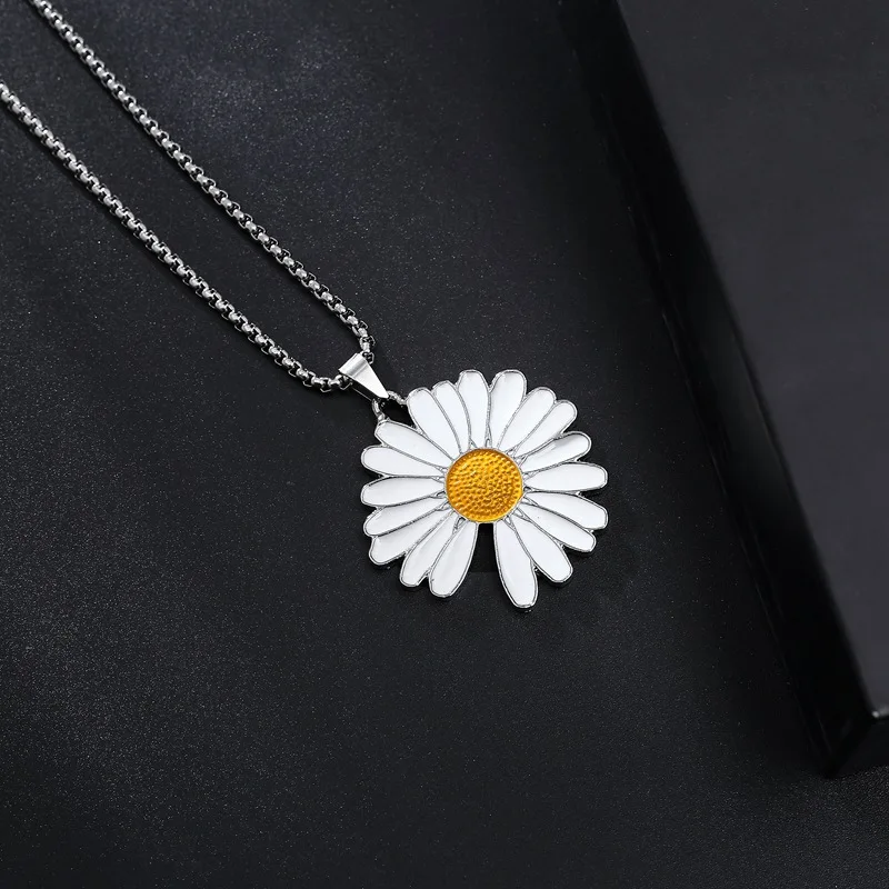 Маленькая подвеска в виде ромашки для женщин и мужчин, кулон из титановой стали в виде цветка ПМО, кулон в стиле хип-хоп, белый цвет, Модная бижутерия