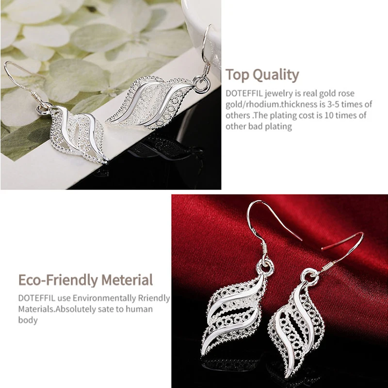 Женские серьги-подвески с листьями DOTEFFIL, из стерлингового серебра 925 пробы, модные ювелирные украшения для свадьбы, помолвки, вечеринки