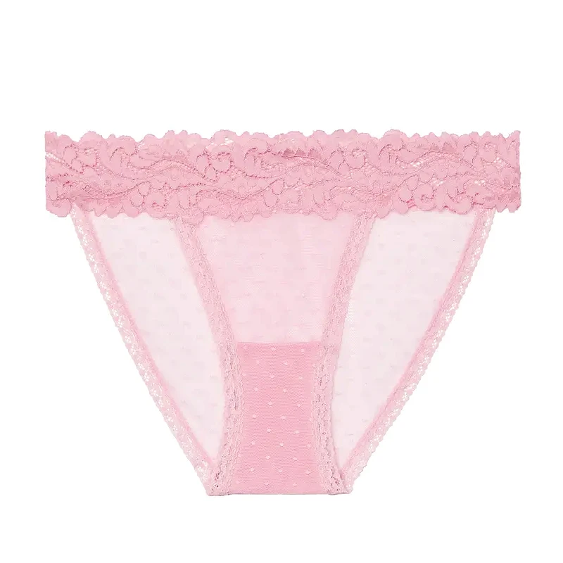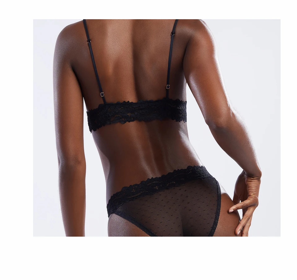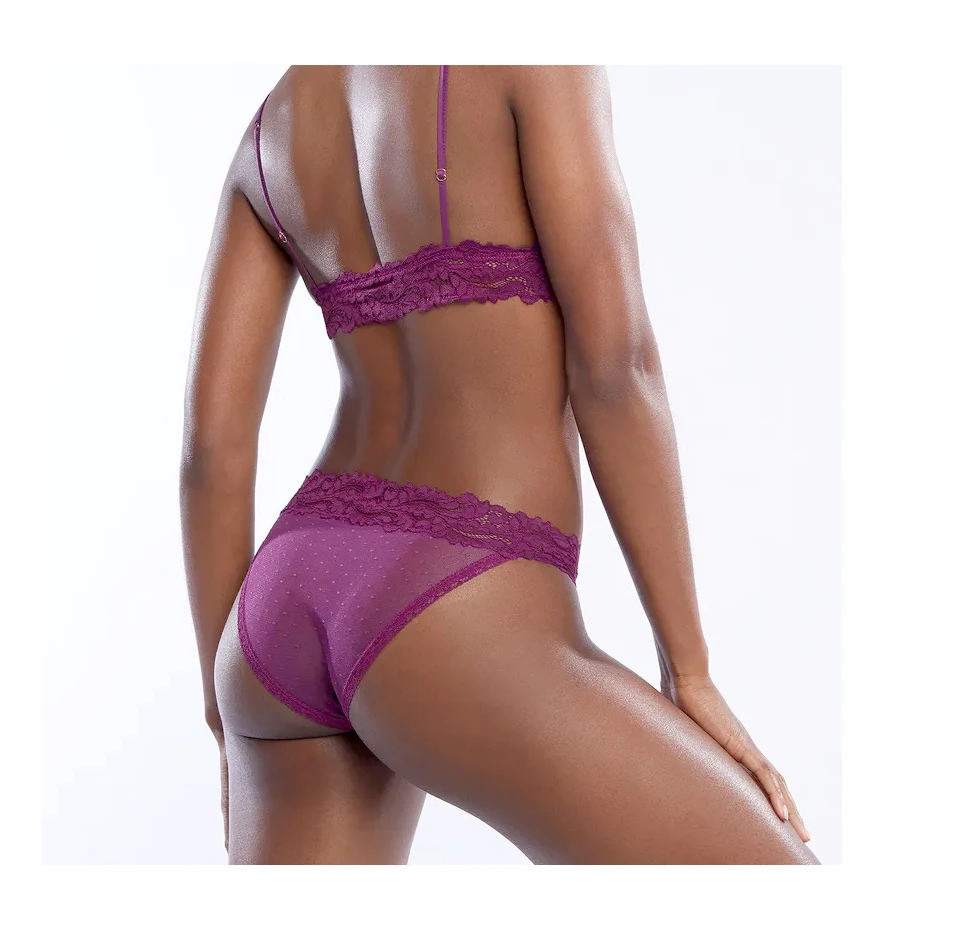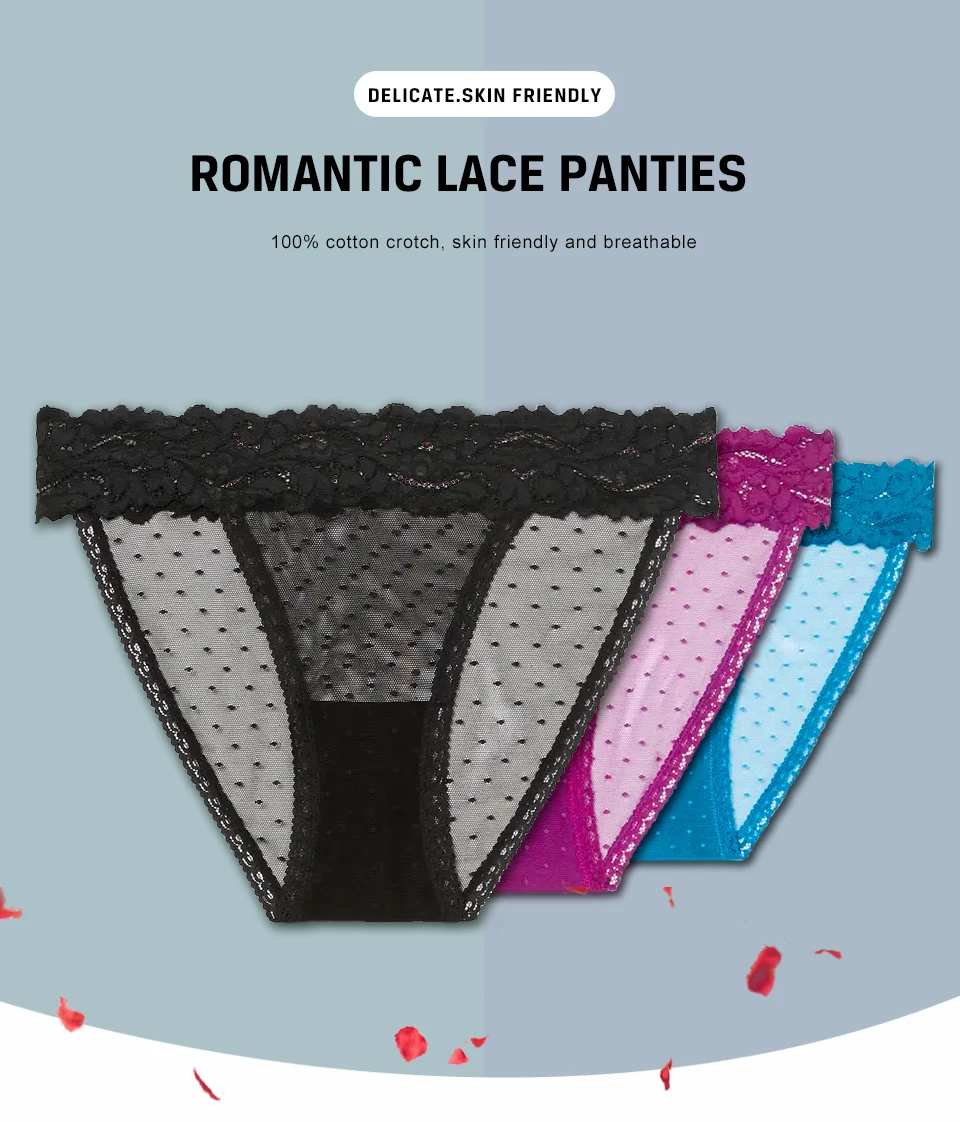 Трусики женские кружевные, прозрачные, с низкой талией, в горошек