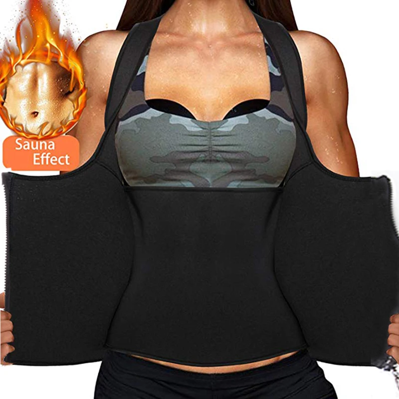 Неопрен тонкий формочек эффект сауны, платье с резинкой на талии тренер Для женщин боди Корректирующее триммер корсет свитшот для тренировки с двойной компрессией